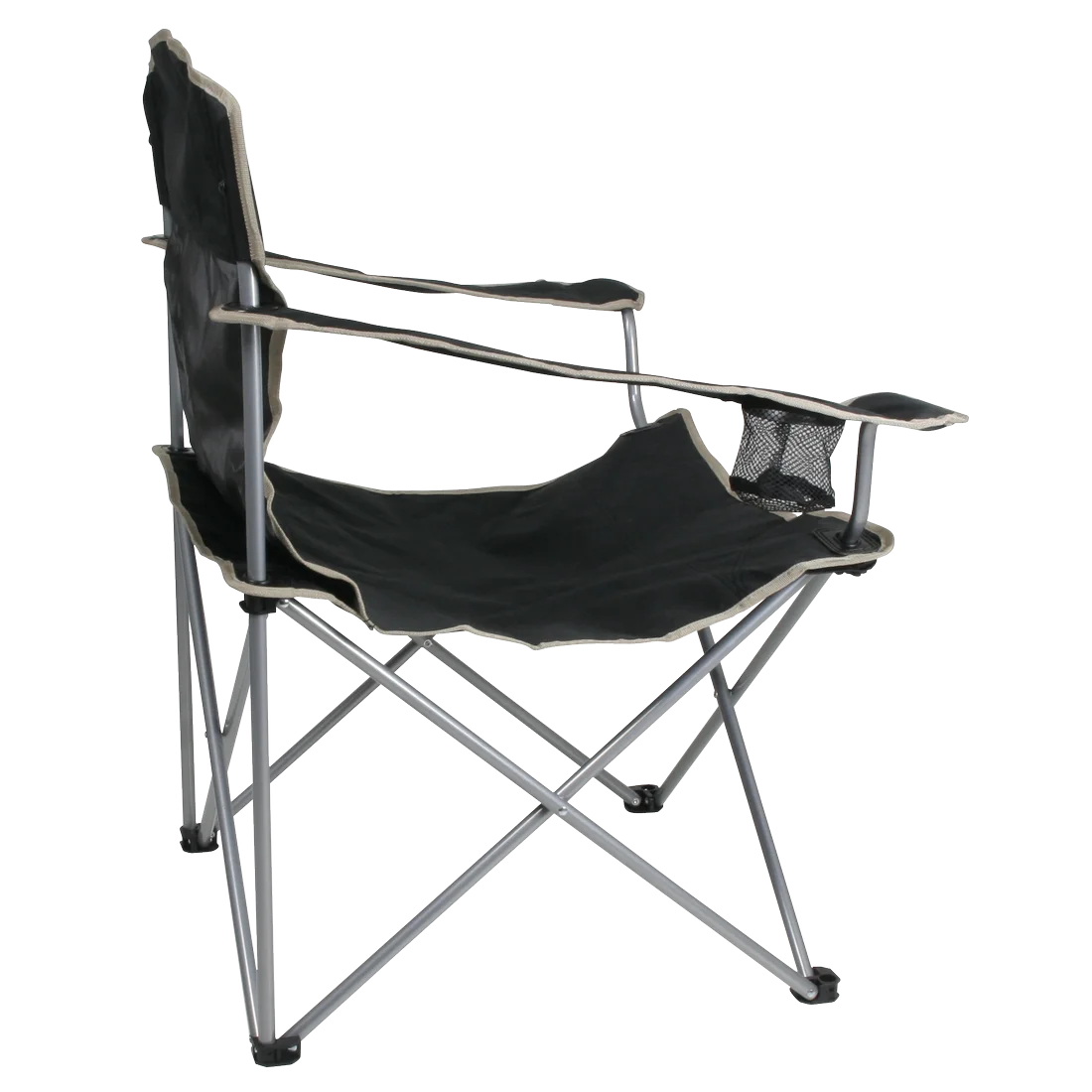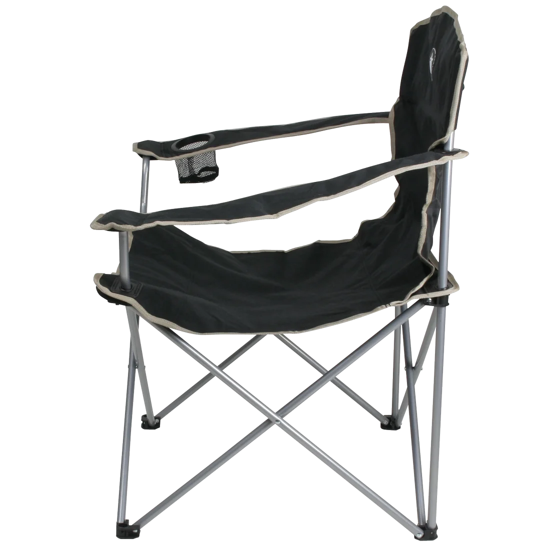 Die rechte Armlehne ist mit einem Getränkehalter ausgestattet, in der Sie eine Getränkedose oder ein Glas abstellen können, während Sie mit Freunden und Familie gemütlich am Lagerfeuer verweilen.