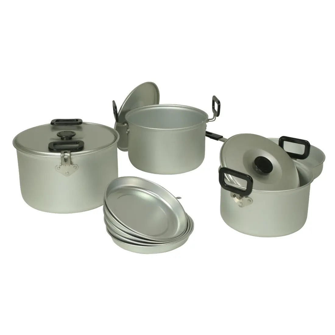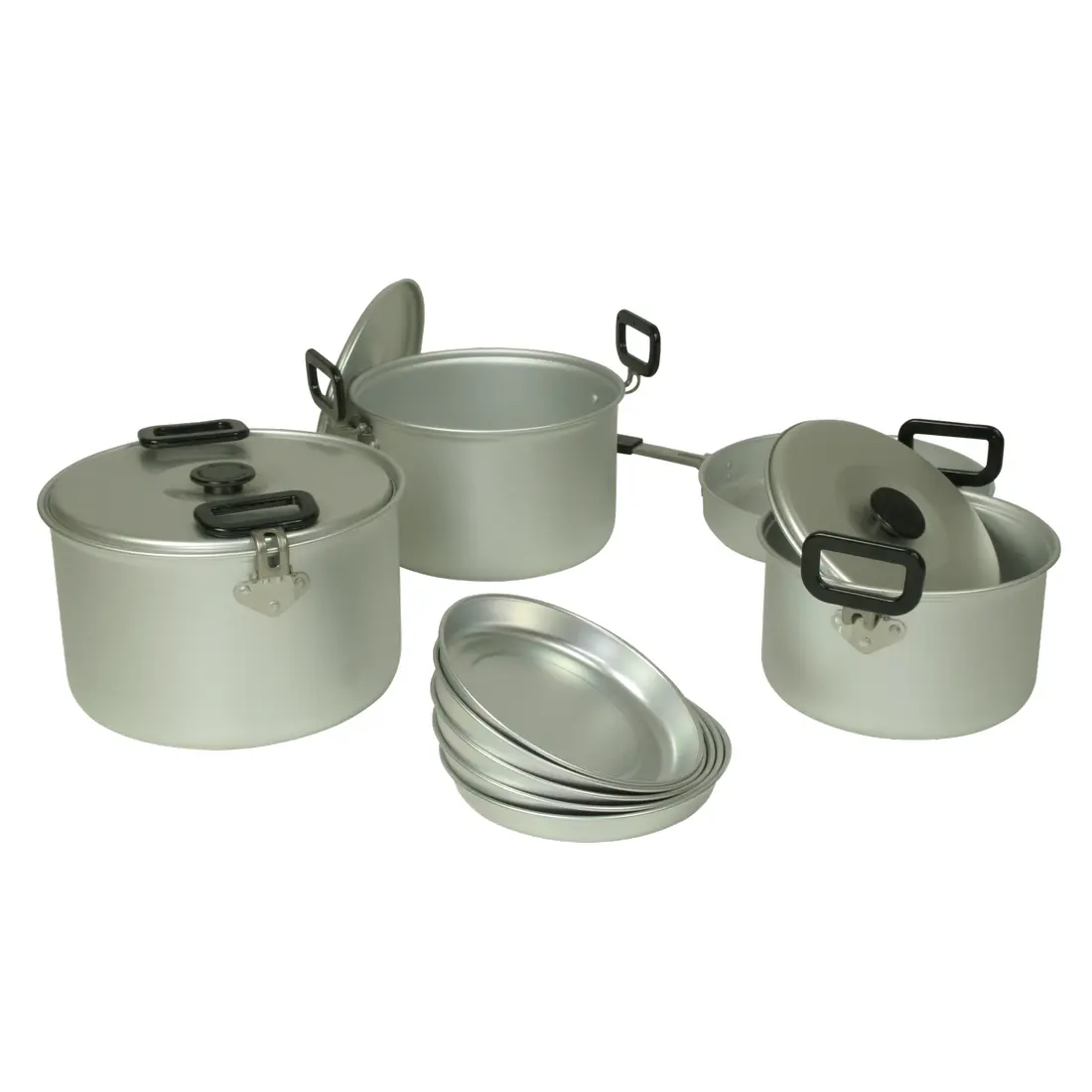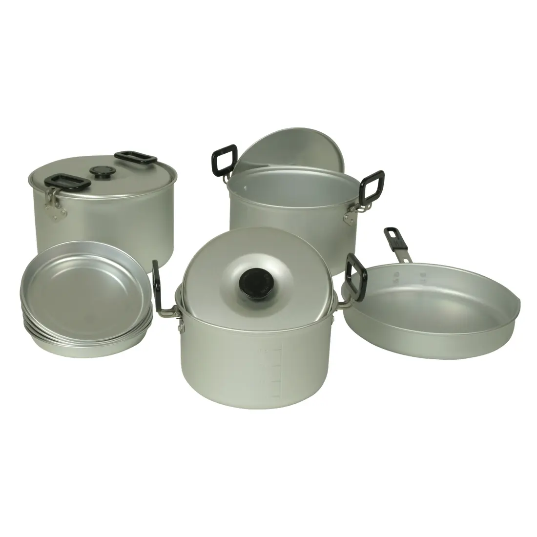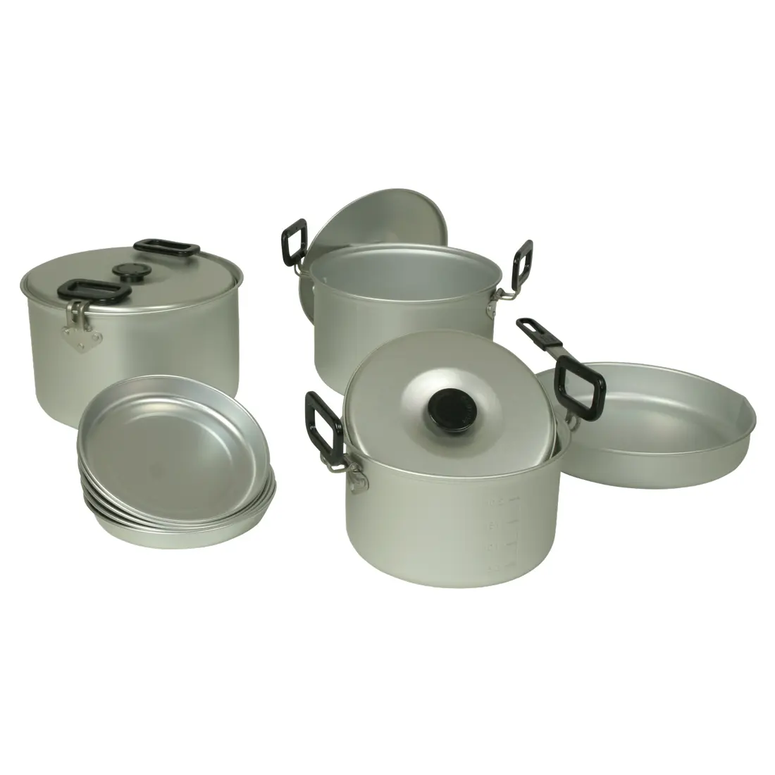 Produktinformationen "10T Topf Pfannen Set Woodman V Camping Kochset für 4 - 5 Mann 12 tlg. Kochgeschirr mit Tellern"