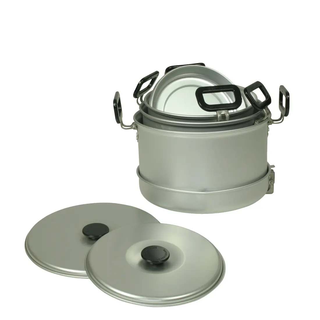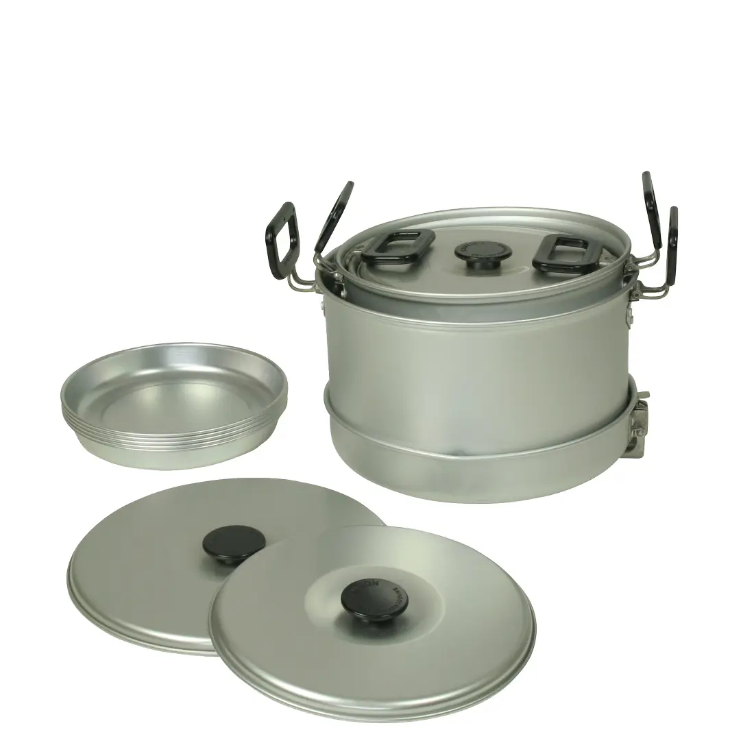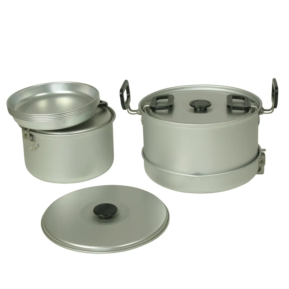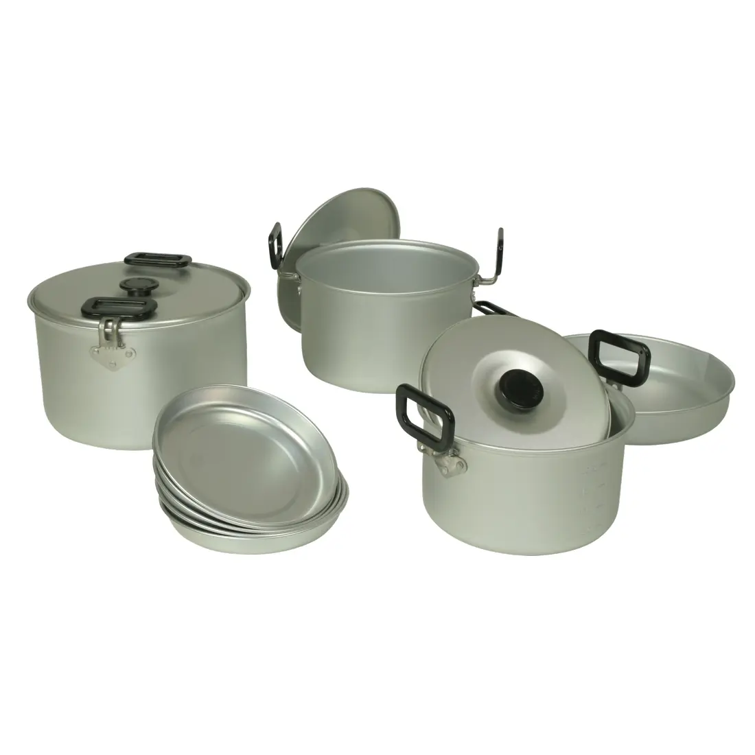 Produktinformationen "10T Topf Pfannen Set Woodman V Camping Kochset für 4 - 5 Mann 12 tlg. Kochgeschirr mit Tellern"