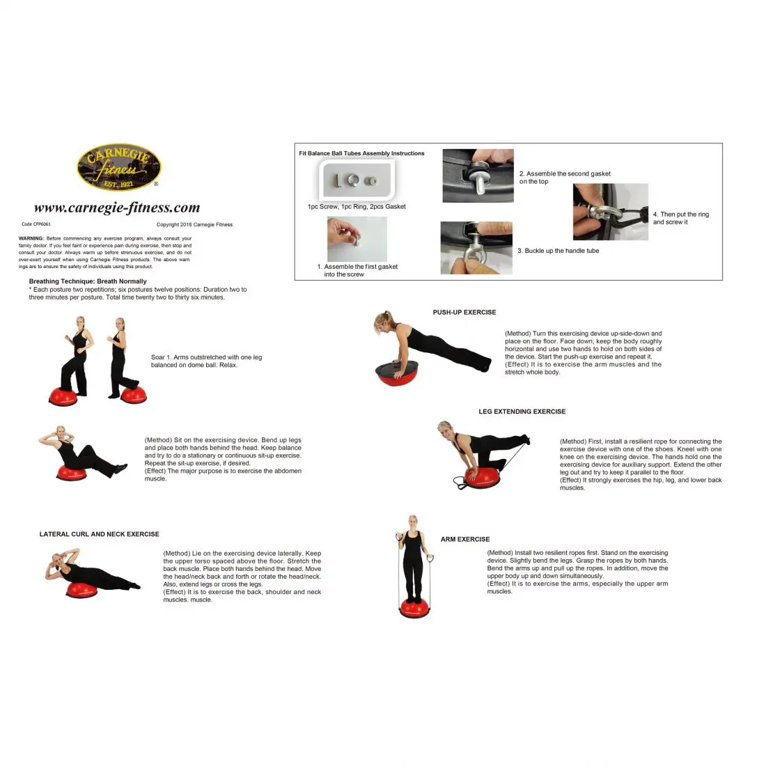 - Auf der Ball-Seite können Sie zusätzlich Dehn- und Kraftübungen wie z.B. Liegestütze oder Dips ausführen. Auf der flachen Seite, trainieren Sie Gleichgewicht und Muskulatur von Oberkörper