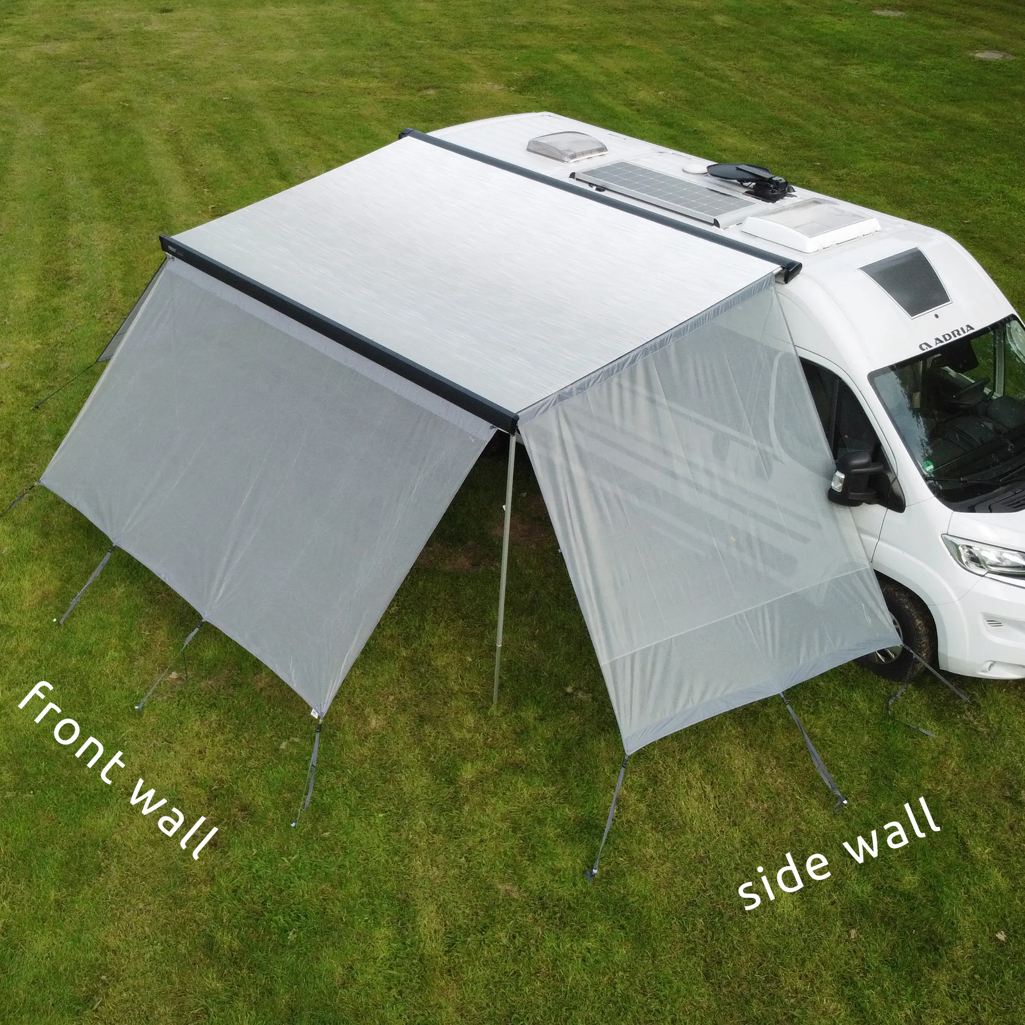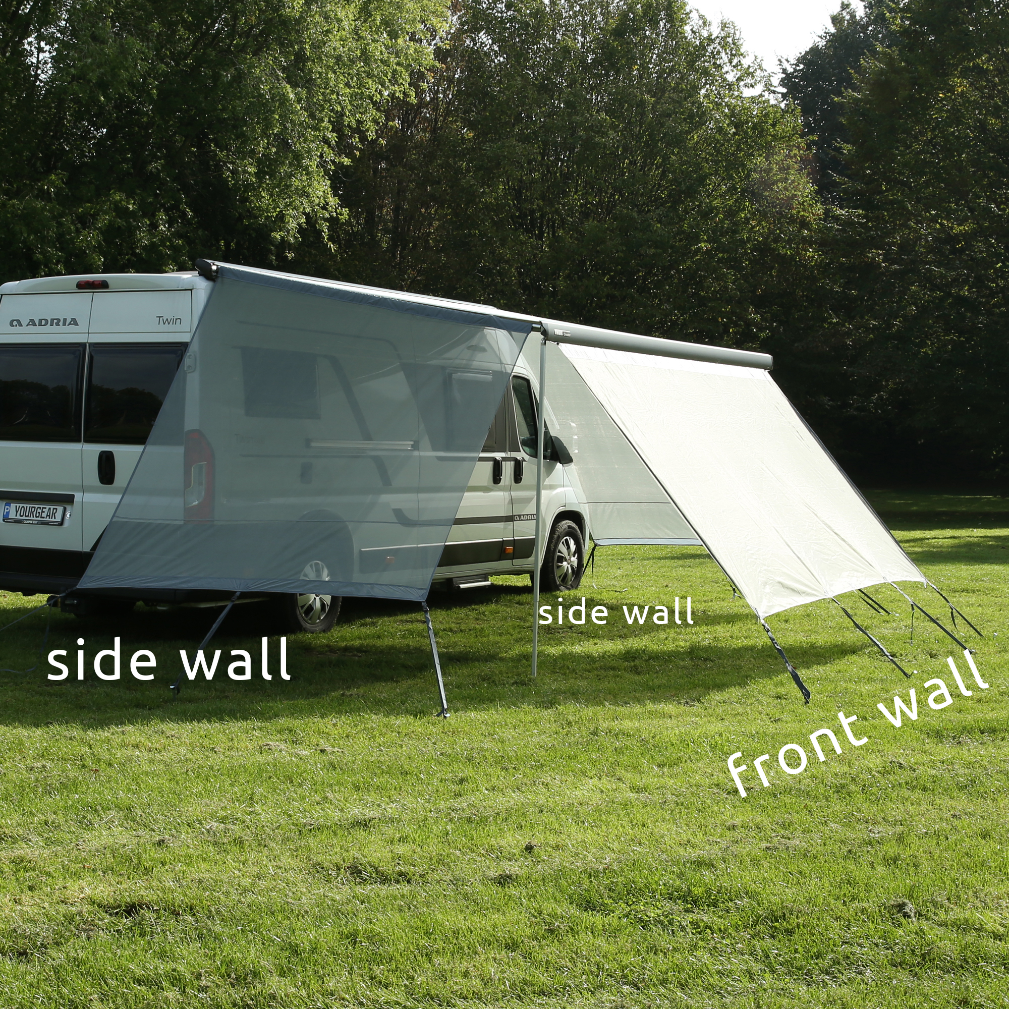 - Capri Sun Blocker Set de parois latérales - 2 x parois latérales 225 x 195/240 cm (gauche & droite) pour les stores de camping-cars, de caravanes et de camping-cars. Paroi latérale de store en tissu perméable au vent comme protection contre les regards et le soleil