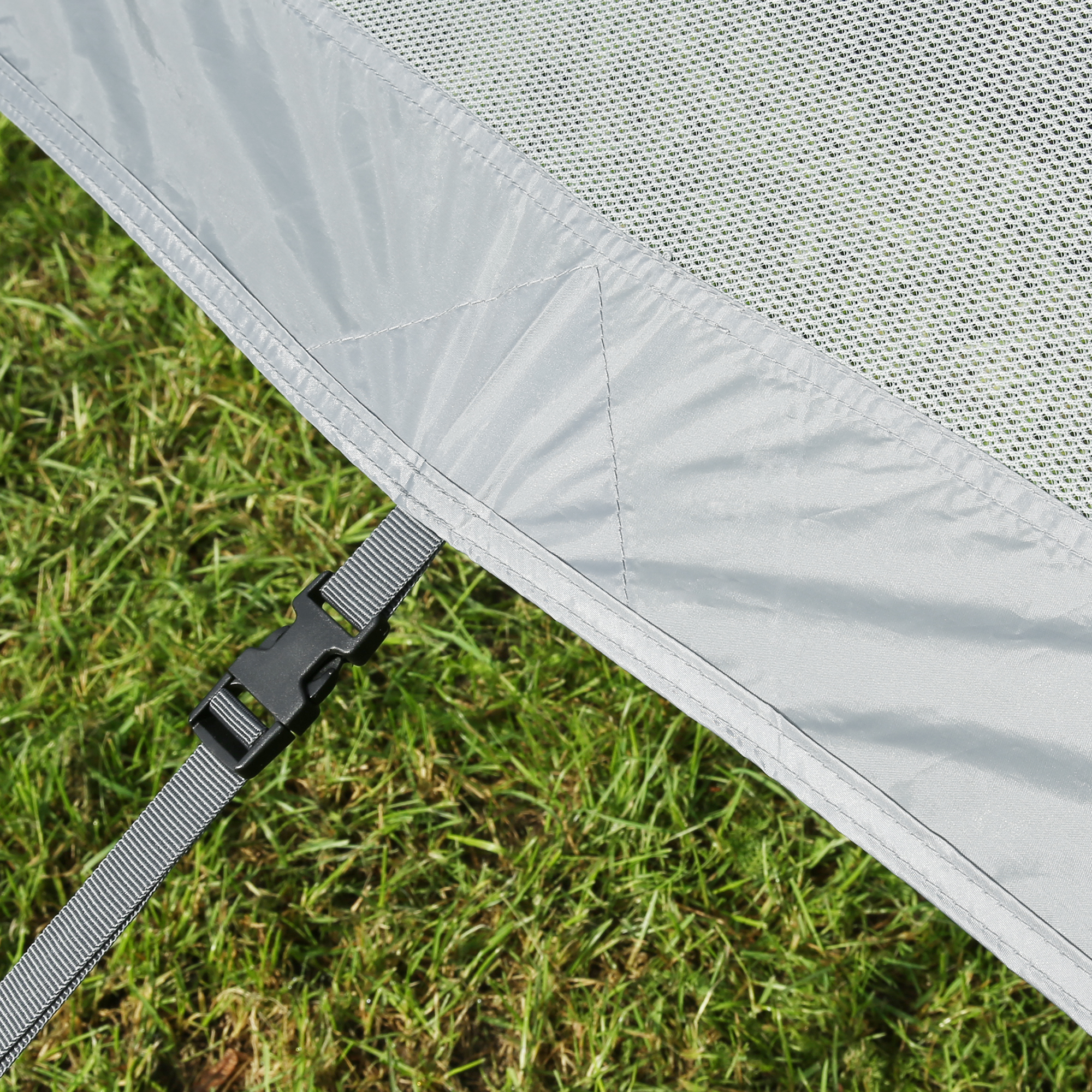 Matériel de fixation: longueur variable, sangles de tension amovibles et solides piquets de tente en acier