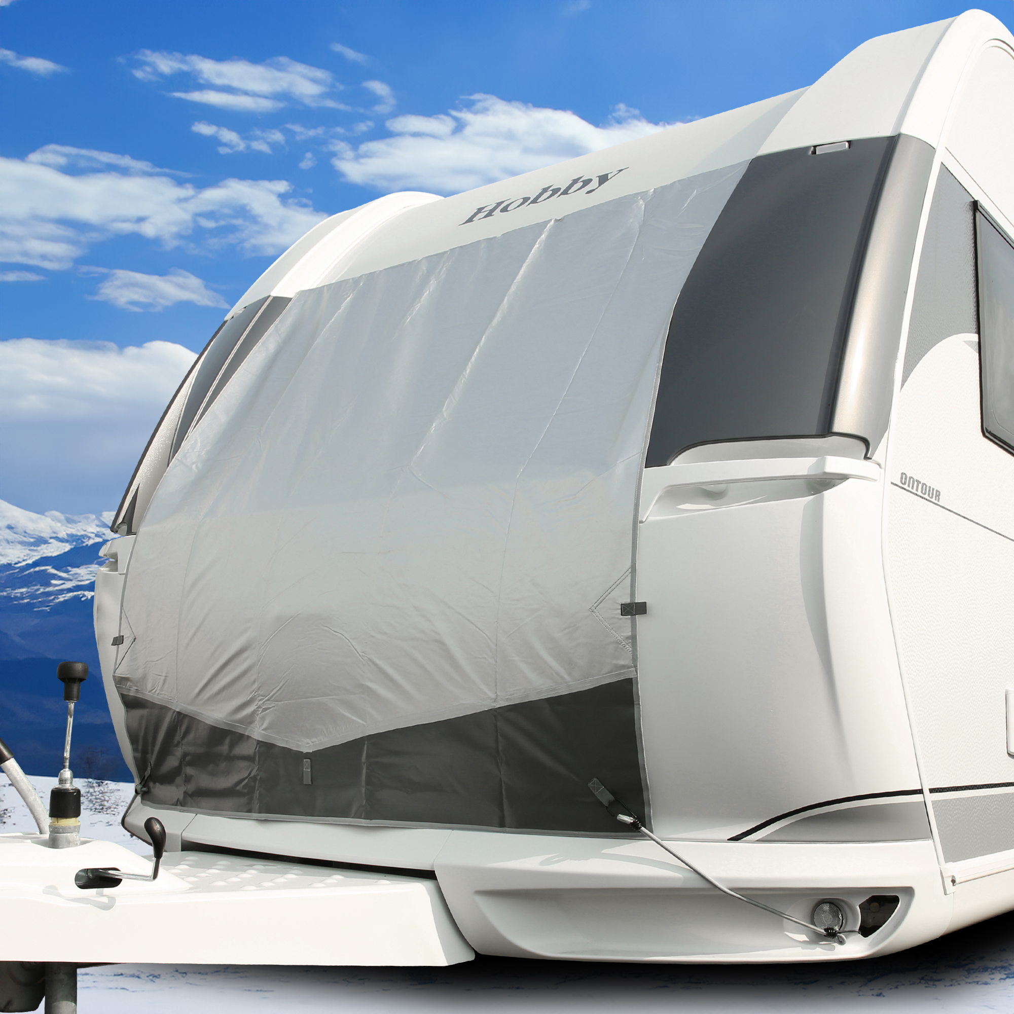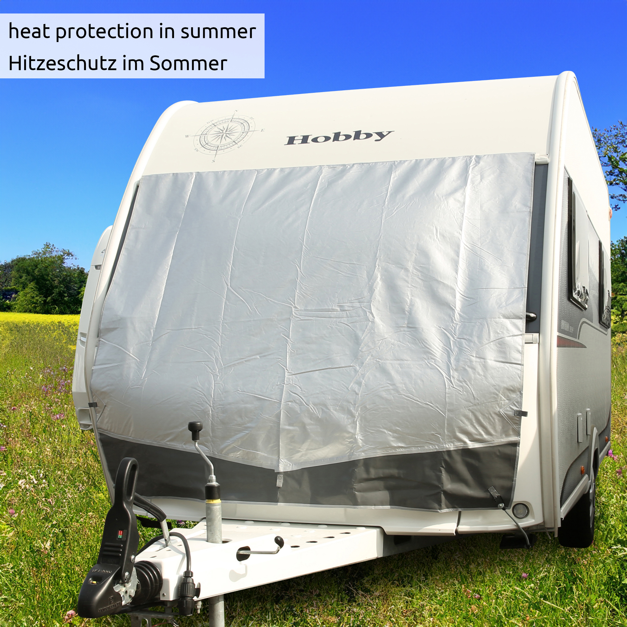 - Caravan Tarpaulin Thermo - Lona protectora universal para la parte delantera y trasera. La lona térmica protege el interior de la caravana de la luz solar y la caja de la bombona de gas del hielo y la nieve