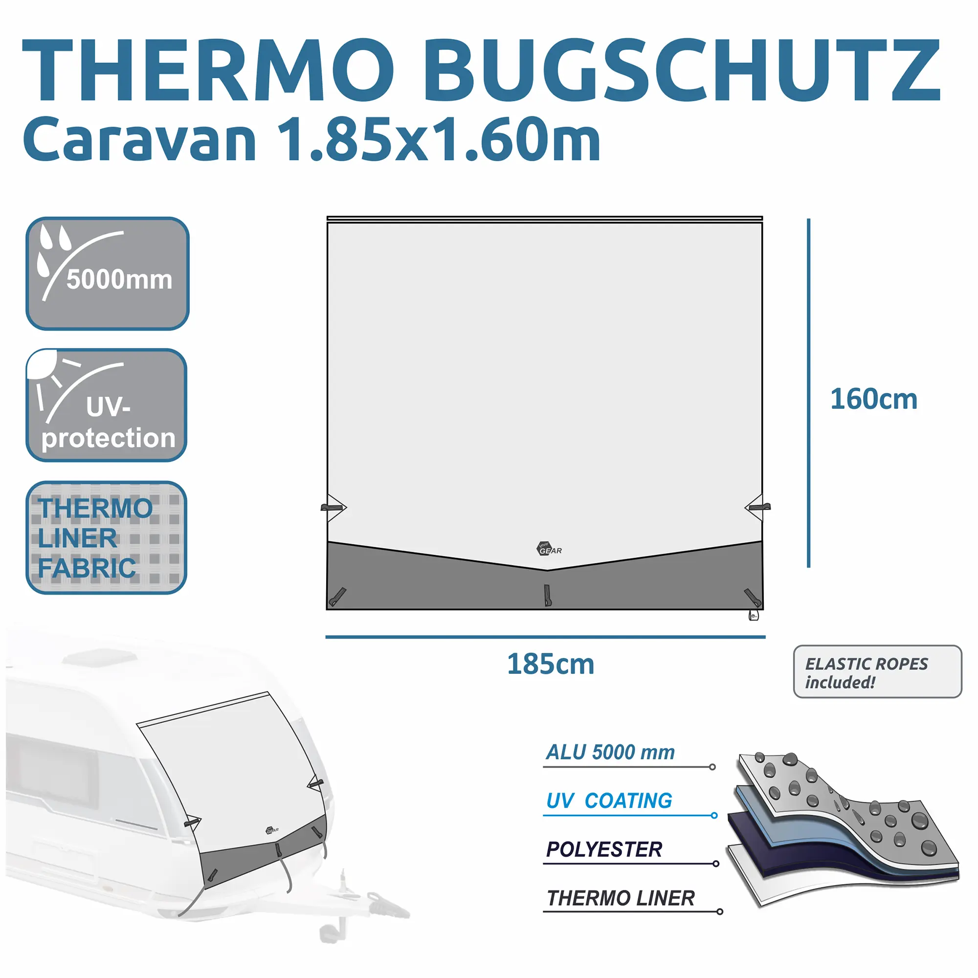 your GEAR bâche thermique pour caravane pour l´hiver et l´été - 185 x 160 cm