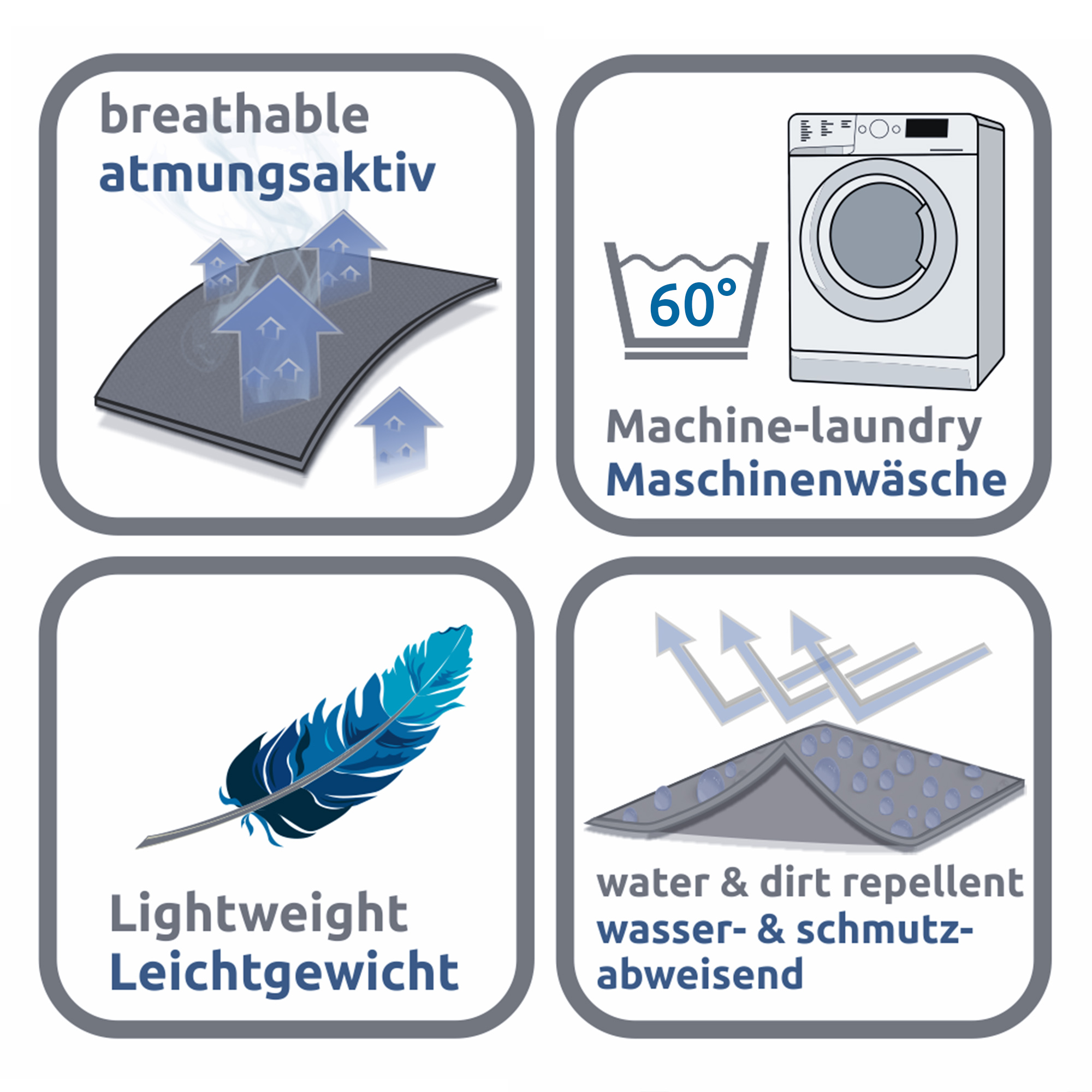 - Higiénico e inodoro - si está sucio o huele mal, el cojín para perros easy-care se lava simplemente en la lavadora a 60°C . Una vuelta rápida en la secadora y la colchoneta para perros estará lista para su uso