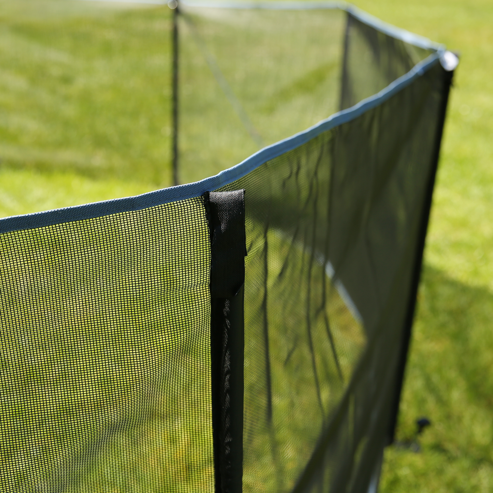 - Robusta y estable: la valla está fabricada con un robusto tejido de malla Textilene. Es repelente al agua, resistente a los rayos UV y permeable al viento. Las cremalleras de cierre automático situadas en los laterales ofrecen la posibilidad de fijar elementos adicionales para crear el cercado que necesite
