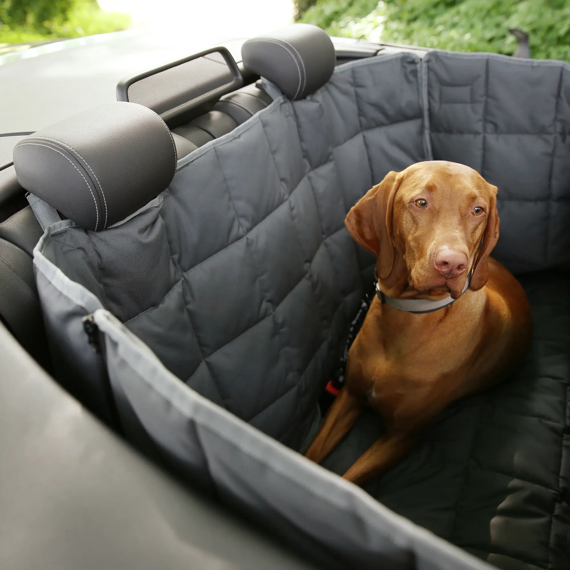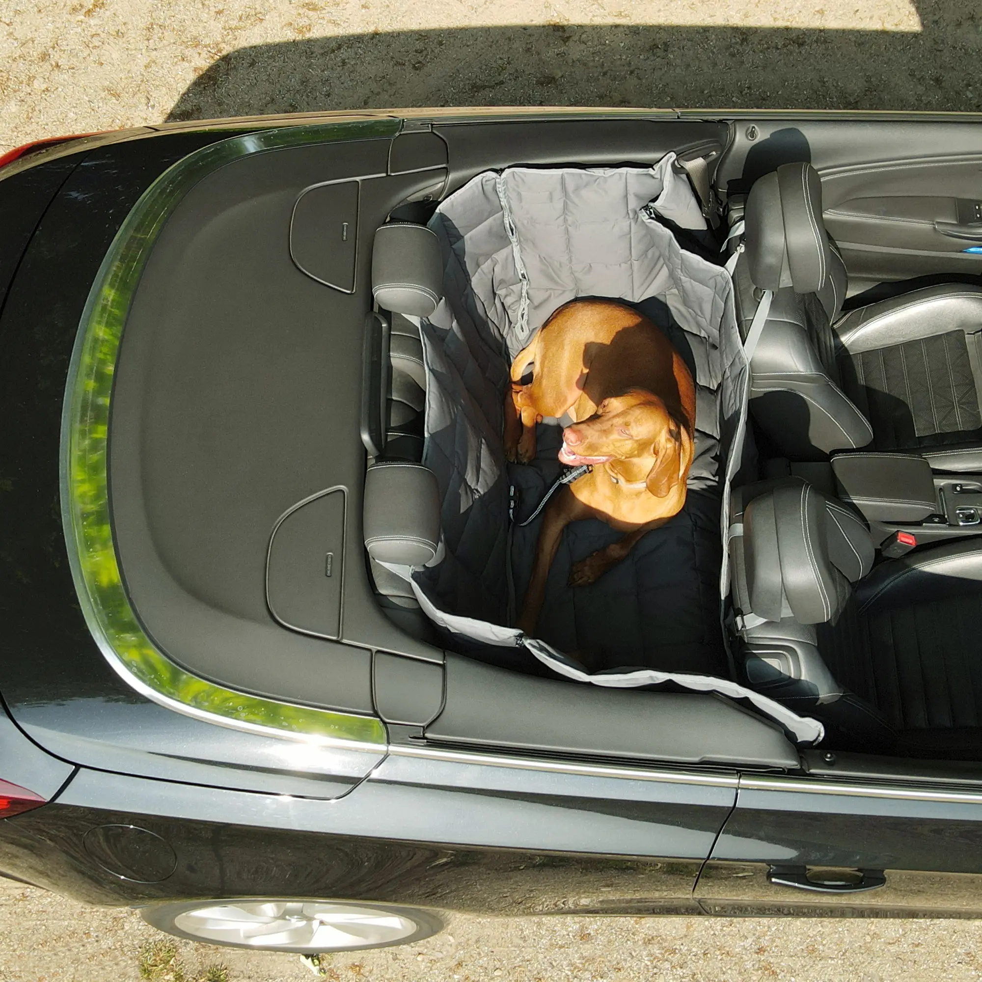 Le Rapallo peut également être utilisé parfaitement dans les cabriolets. Toute la banquette arrière est protégée et les animaux de compagnie ne peuvent pas glisser dans le puits de pieds.