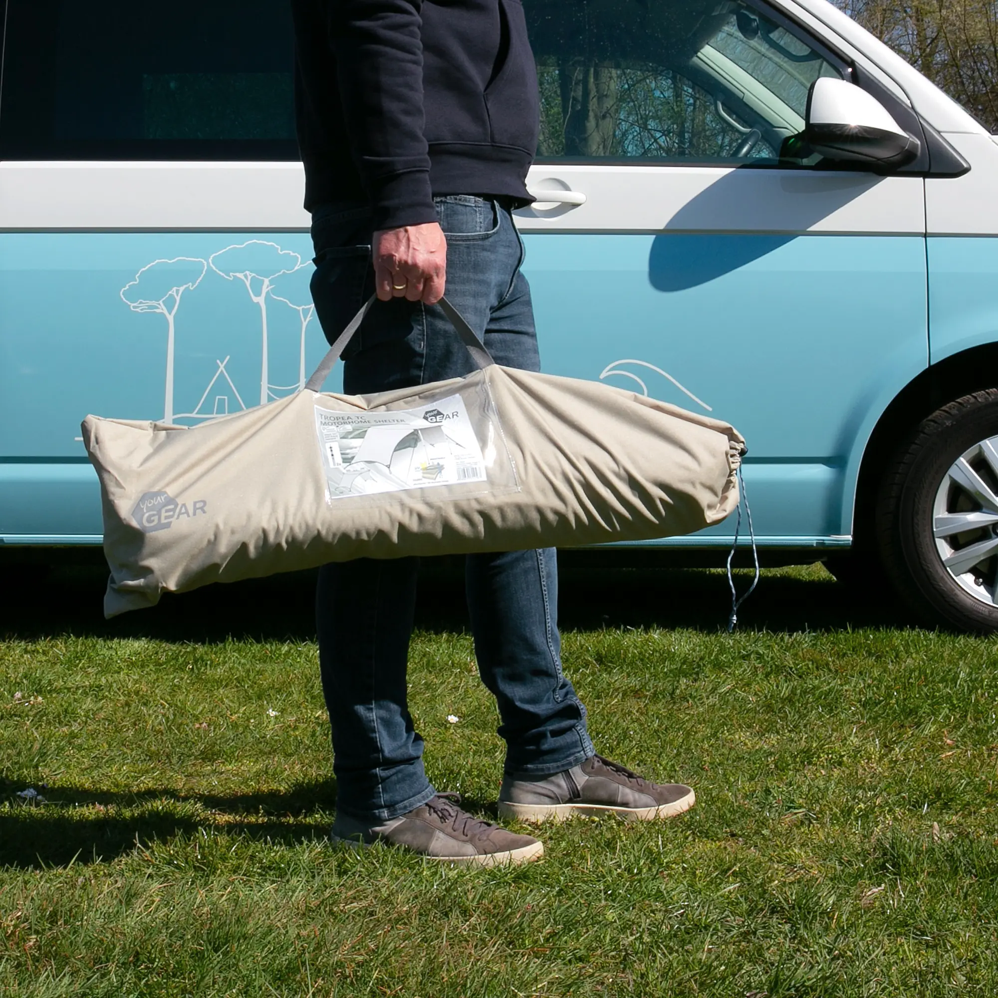 Une protection solaire et contre la pluie légère et rapide à monter, en tissu mélangé coton, avec 2 parois latérales pour votre van, bus ou fourgon.
