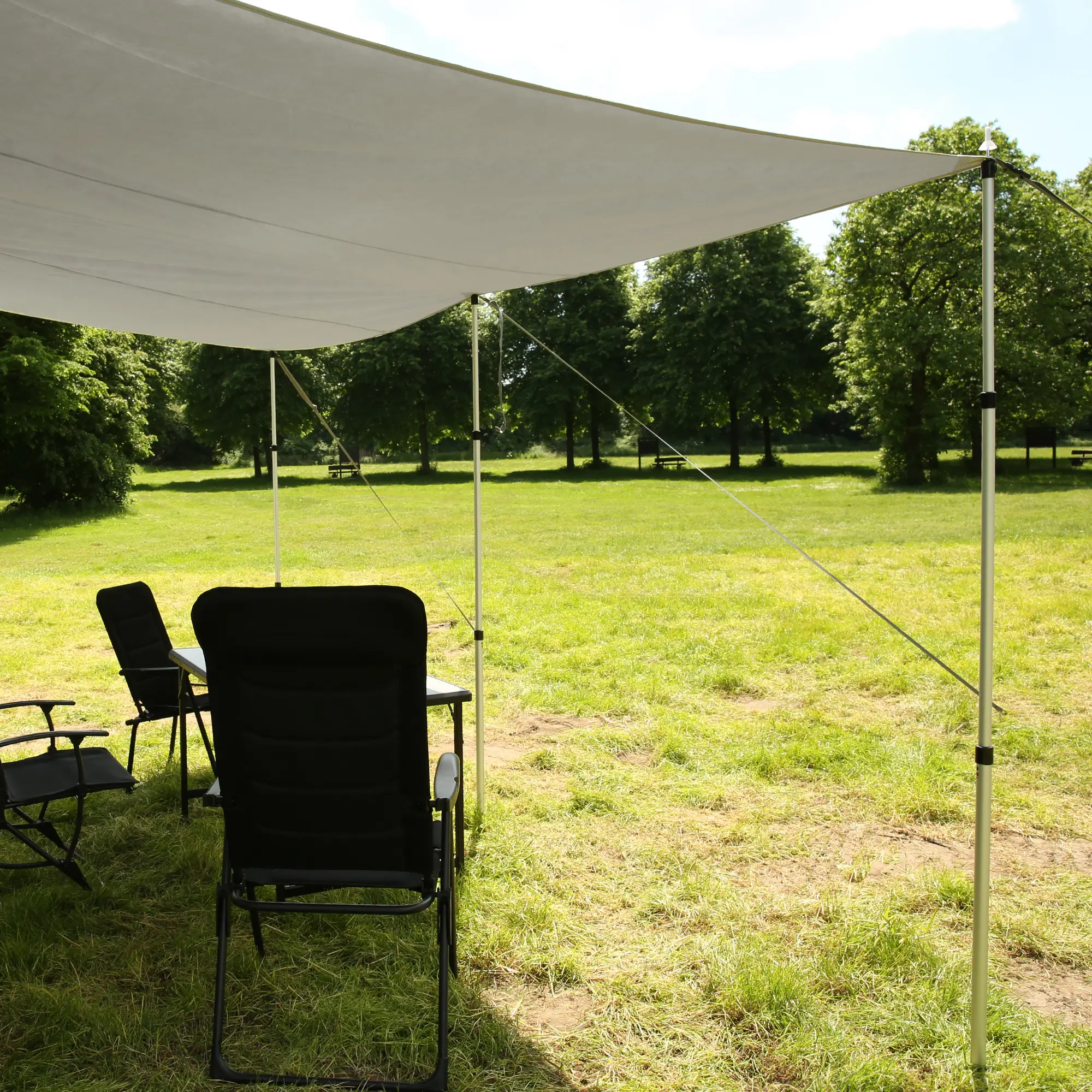- Dimensioni: 435 x 250 cm, altezza: regolabile in continuo, borsa: 97 x 16 x 16 cm. La consegna comprende: tettuccio parasole, 3 pali telescopici, picchetti per tenda, corde, istruzioni per il montaggio, istruzioni per la cura. Adatto per caravan, camper e furgoni camperizzati