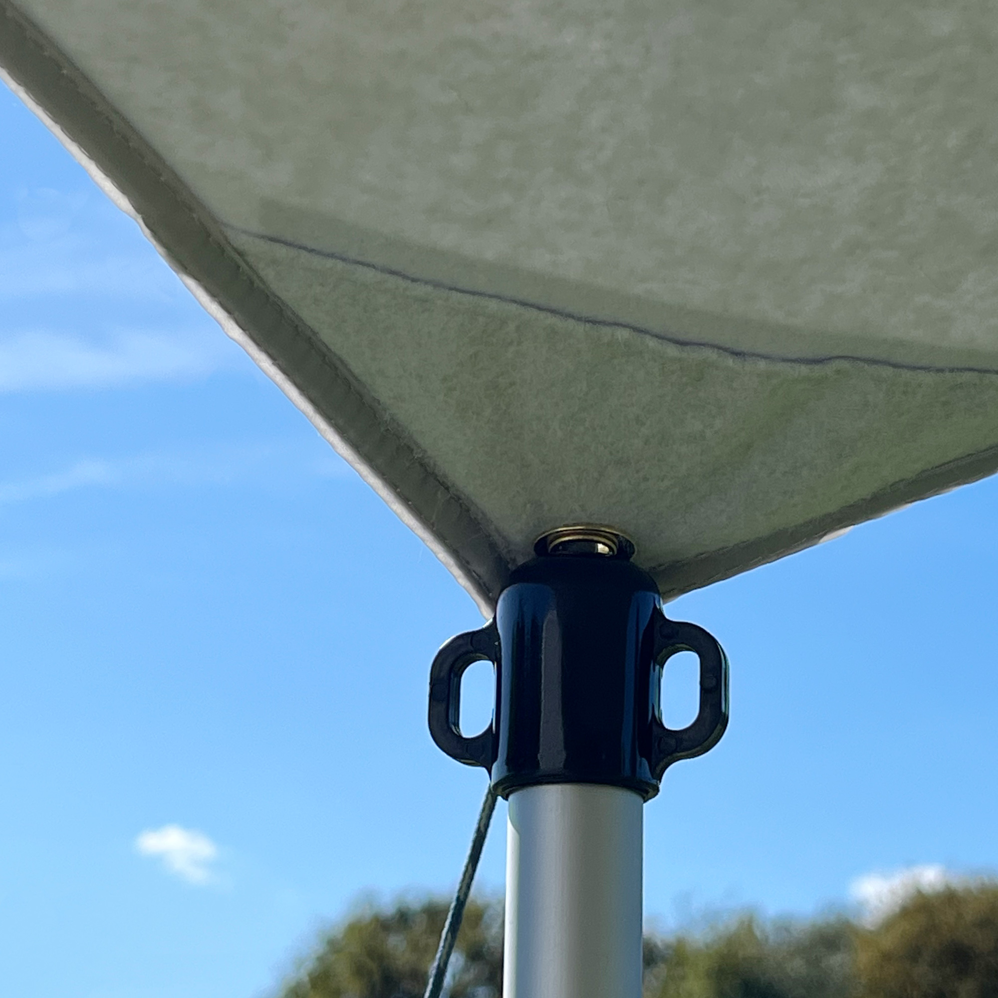 Realizzata in materiale speciale con un rivestimento in alluminio estremamente robusto e riflettente su poliestere Oxford e un interno isolante in pile, la vela offre non solo un´eccezionale durata, ma anche una protezione UV particolarmente elevata di 80+.
