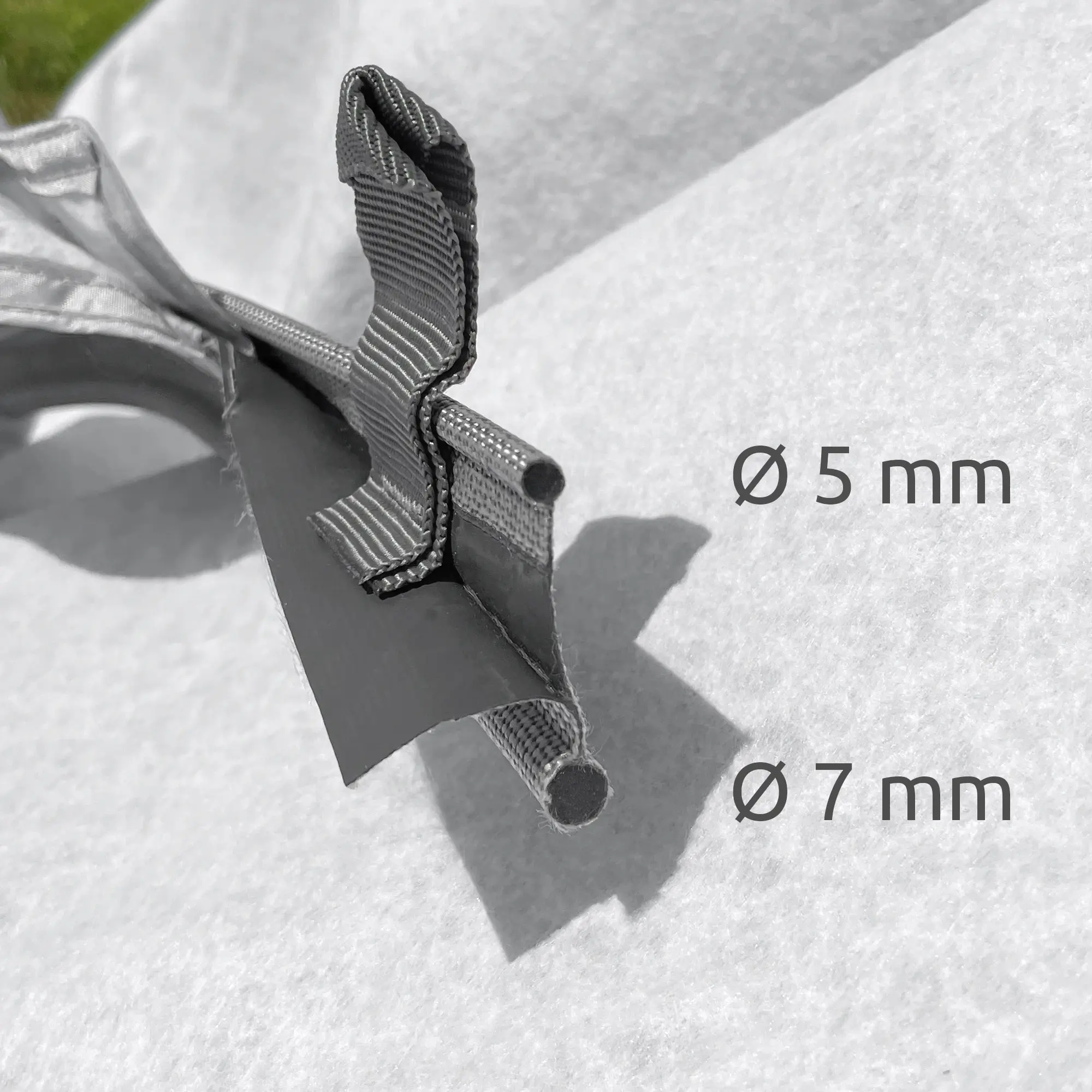 Per garantire una presa sicura dei robusti occhielli metallici e proteggere dai danni, tutti i punti di stress sono stati rinforzati. Cuciture aggiuntive sigillate servono a distribuire uniformemente le forze che si verificano. Con angoli rinforzati e fibbie in plastica cucite, 3 robusti occhielli metallici e 3 cinghie di tensione per tempesta, la nostra tenda offre una stabilità e durata eccezionali.