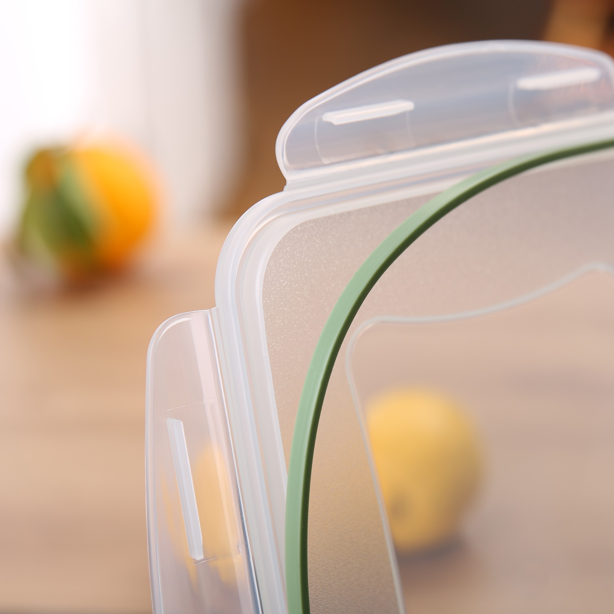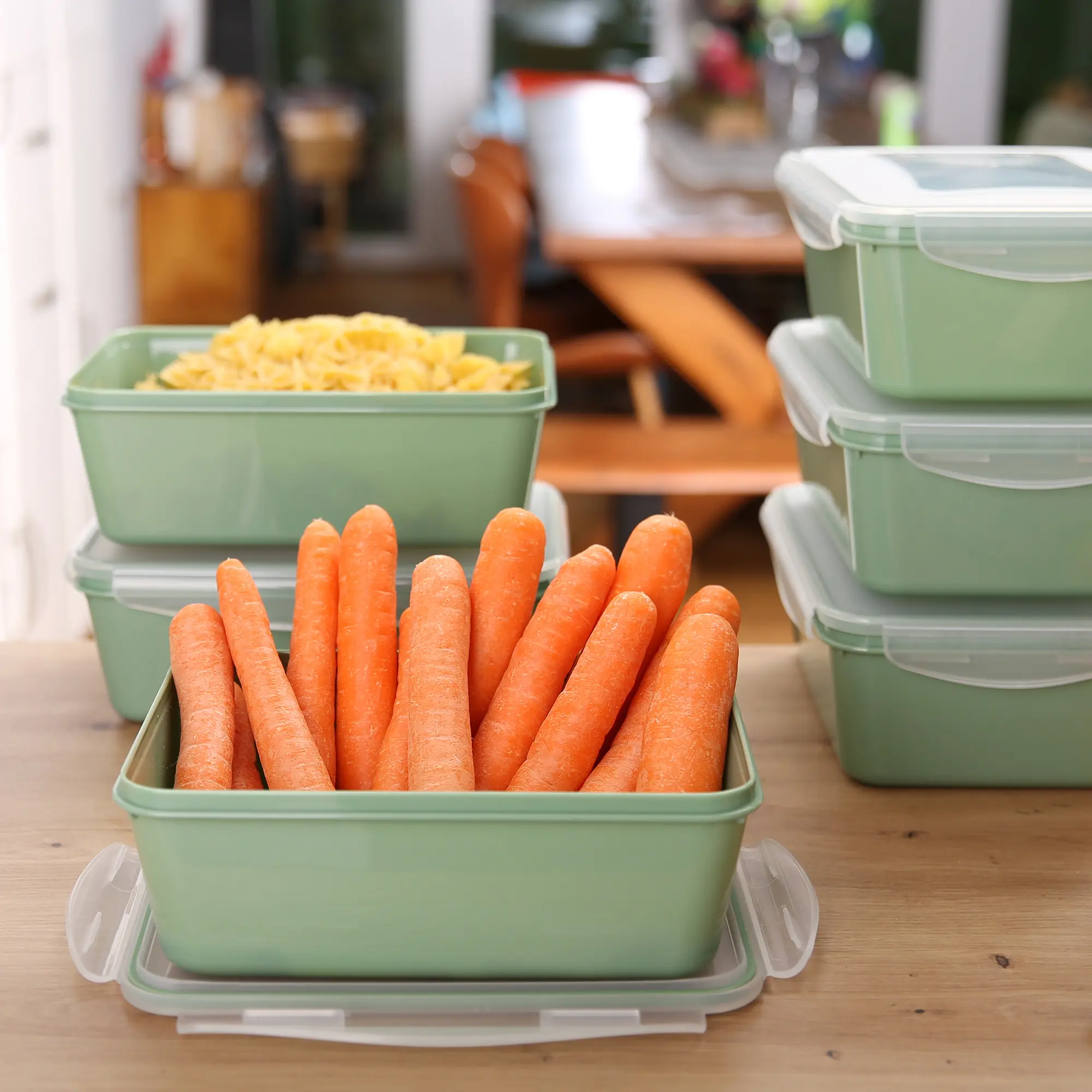 I coperchi trasparenti offrono una chiara visione del contenuto dei contenitori verdi. Questo è particolarmente pratico per conservare provviste nel cassetto della tua cucina.