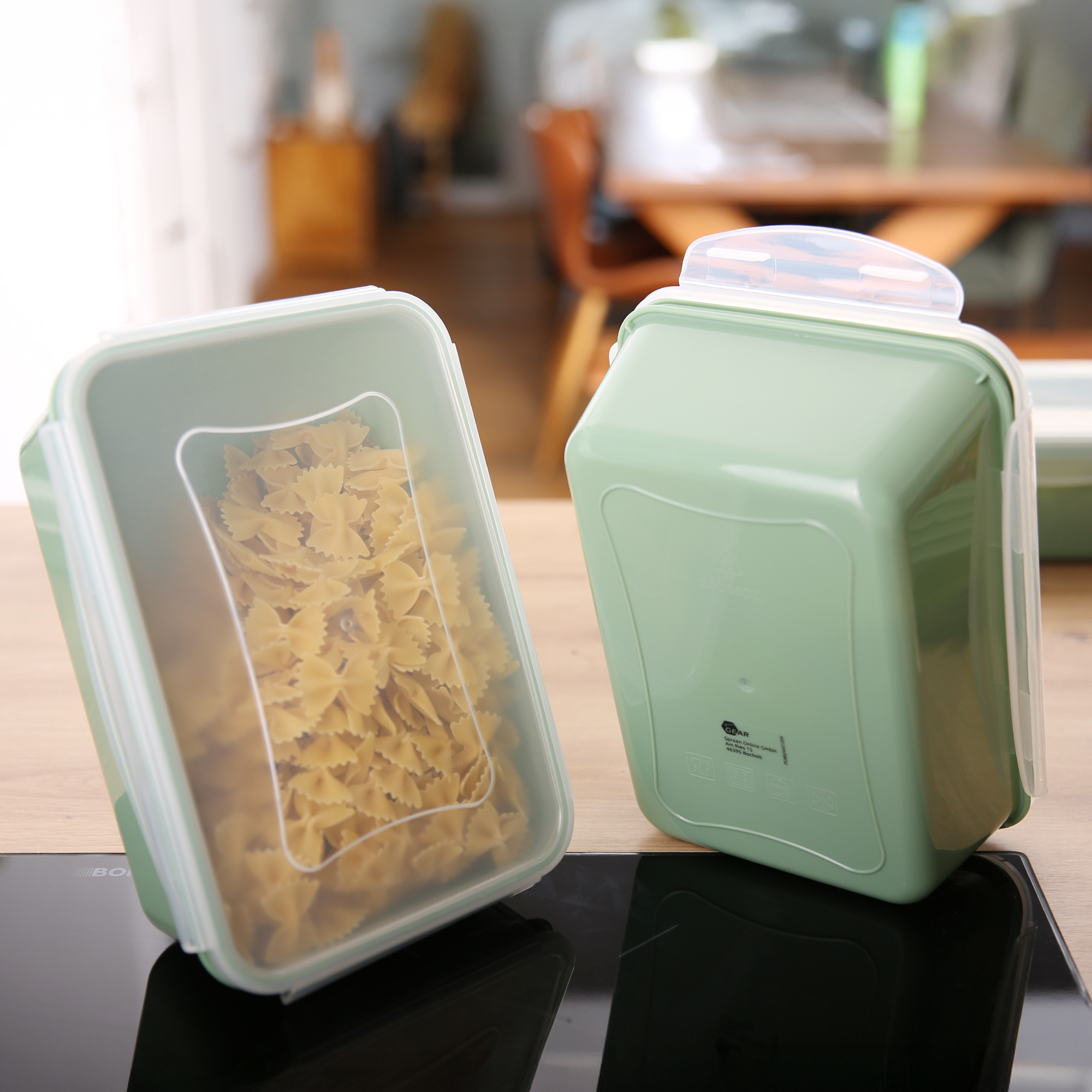 I coperchi trasparenti offrono una chiara visione del contenuto dei contenitori verdi. Questo è particolarmente pratico per conservare provviste nel cassetto della tua cucina.