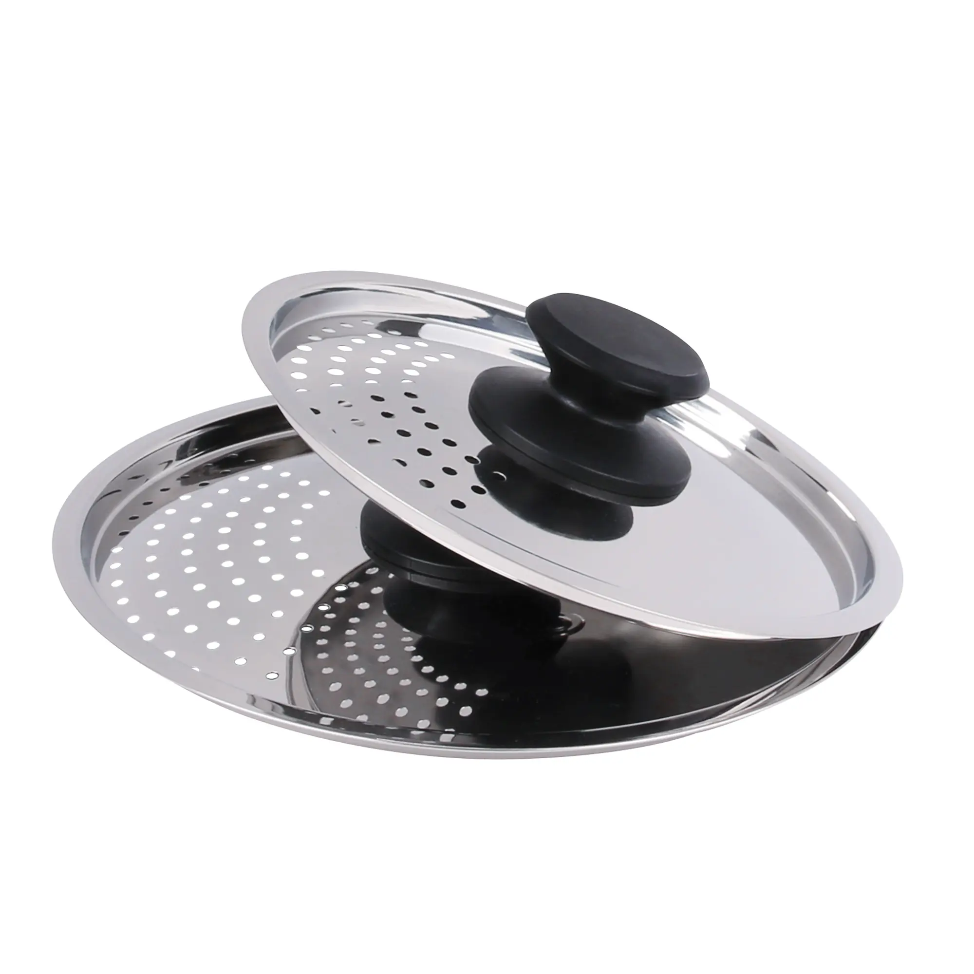 La robusta maniglia in ABS è applicabile universalmente e garantisce una gestione sicura. I due coperchi sono dotati di fori, facilitando lo scarico dell´acqua di cottura.