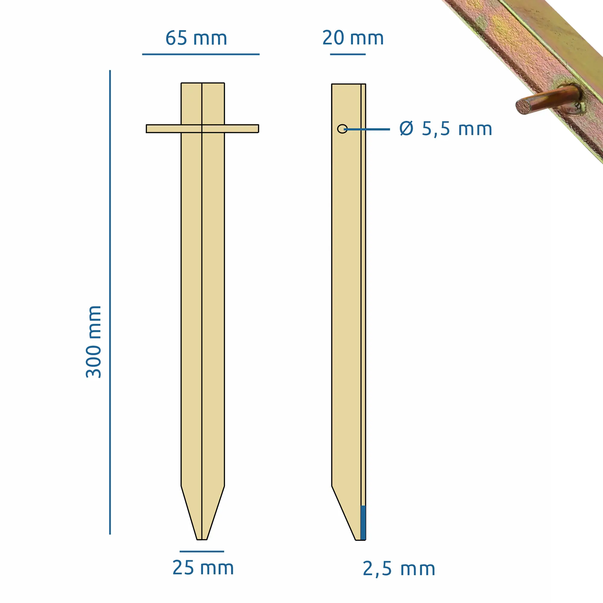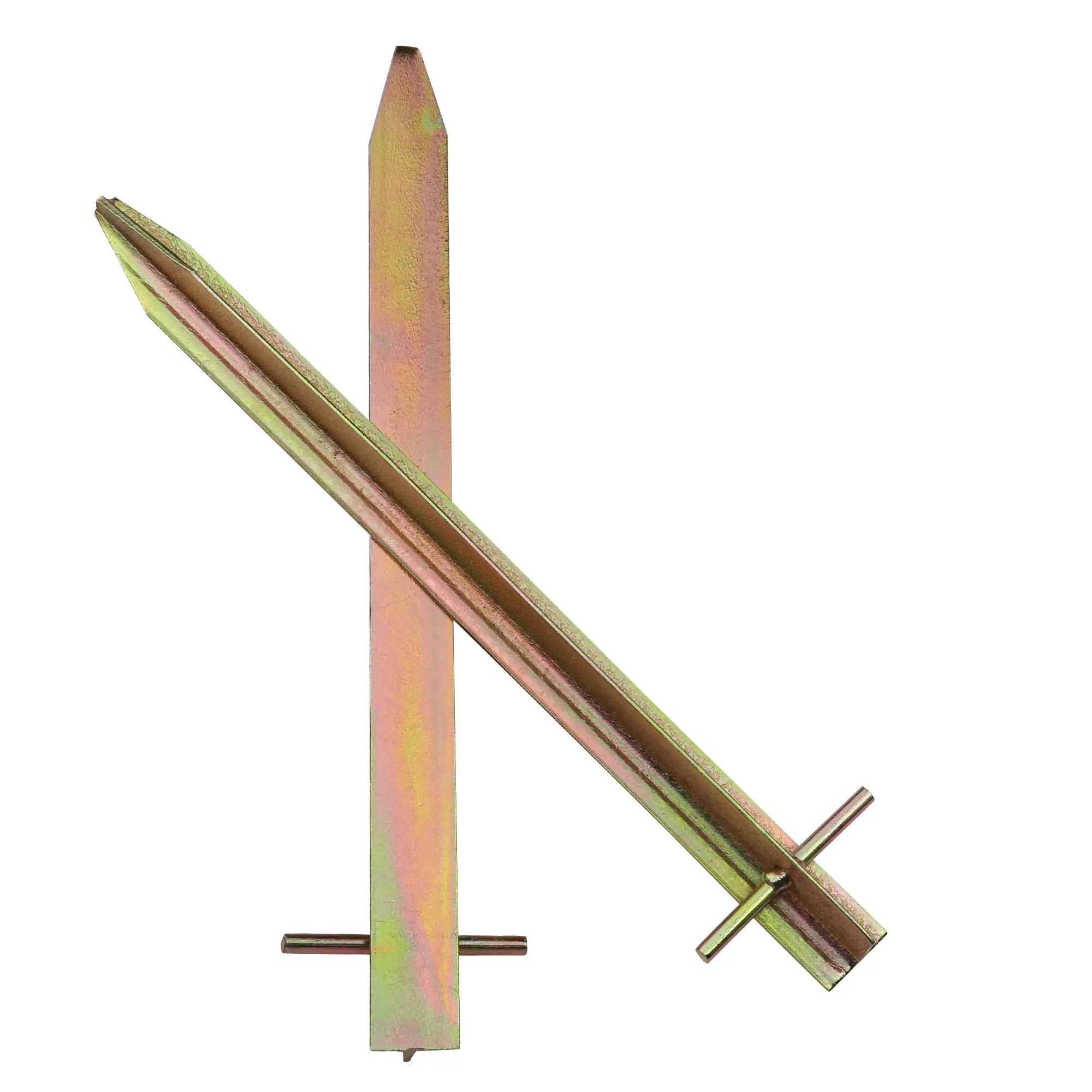 - Hering mit extrem stabilem T Profil, der unten spitz zuläuft. Robuster und langlebiger Bodenanker, geeignet für Böden wie Wald, Wiese, Sand und steinige Böden