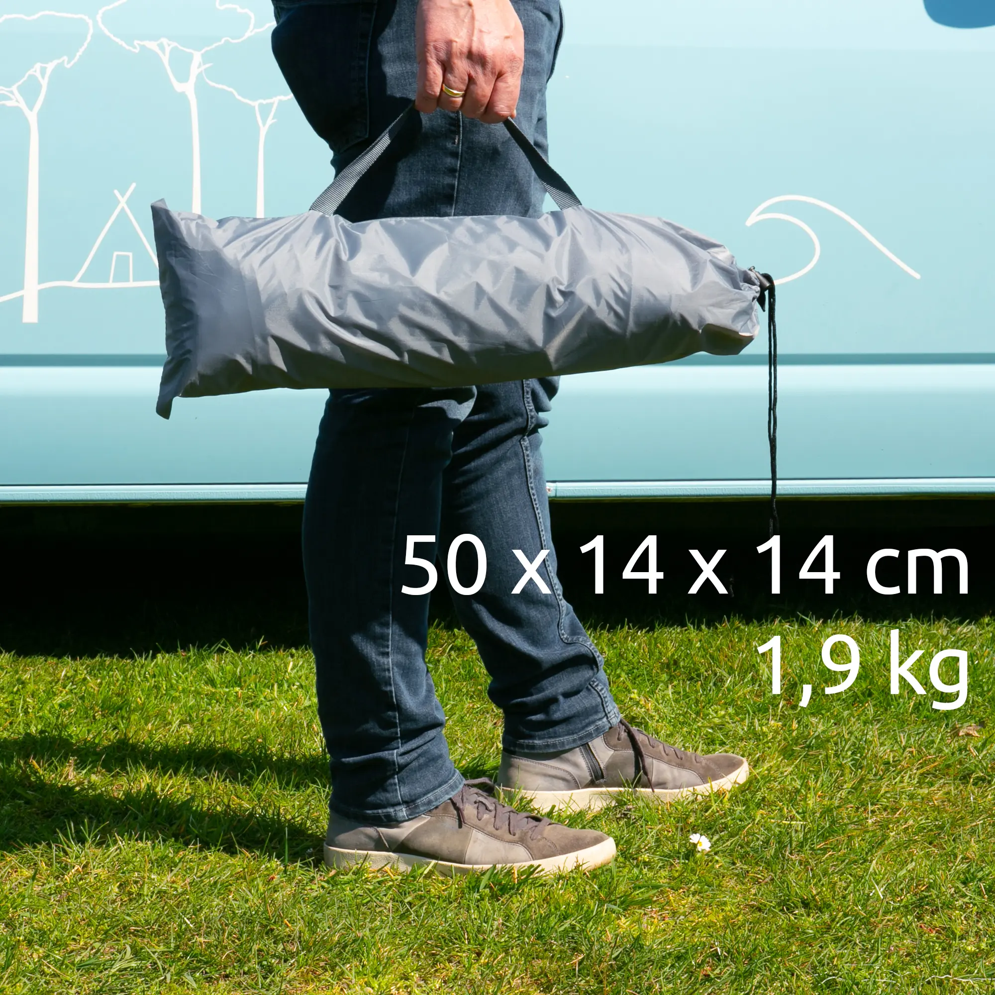- Seitliche Wände mit Hohlsaum zur direkten Montage an den Auslegerarmen der Markise. Passend für Thule-, Fiamma- oder Dometic- Markisen mit 200 cm Auszug. Rafterstangen werden nicht benötigt