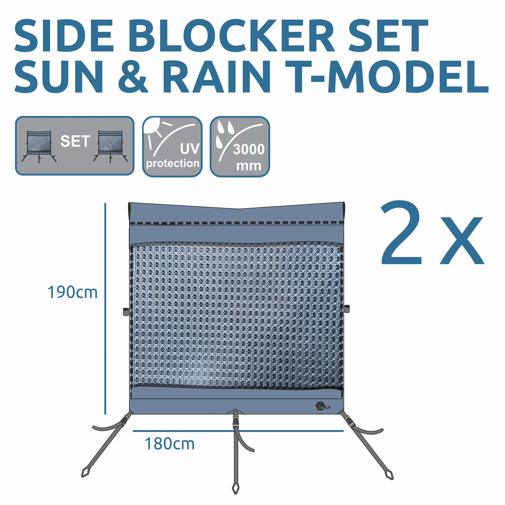 - Sun + Rain Blocker - 2 Seitenwände (links und rechts) 180 x 190 cm für Campingbus Markisen mit 2 Meter Auszug. Markisenwand in doppelwandiger Ausführung mit winddurchlässigem Sonnenschutz-Gewebe und blickdichter Abdeckung gegen Regen und Wind