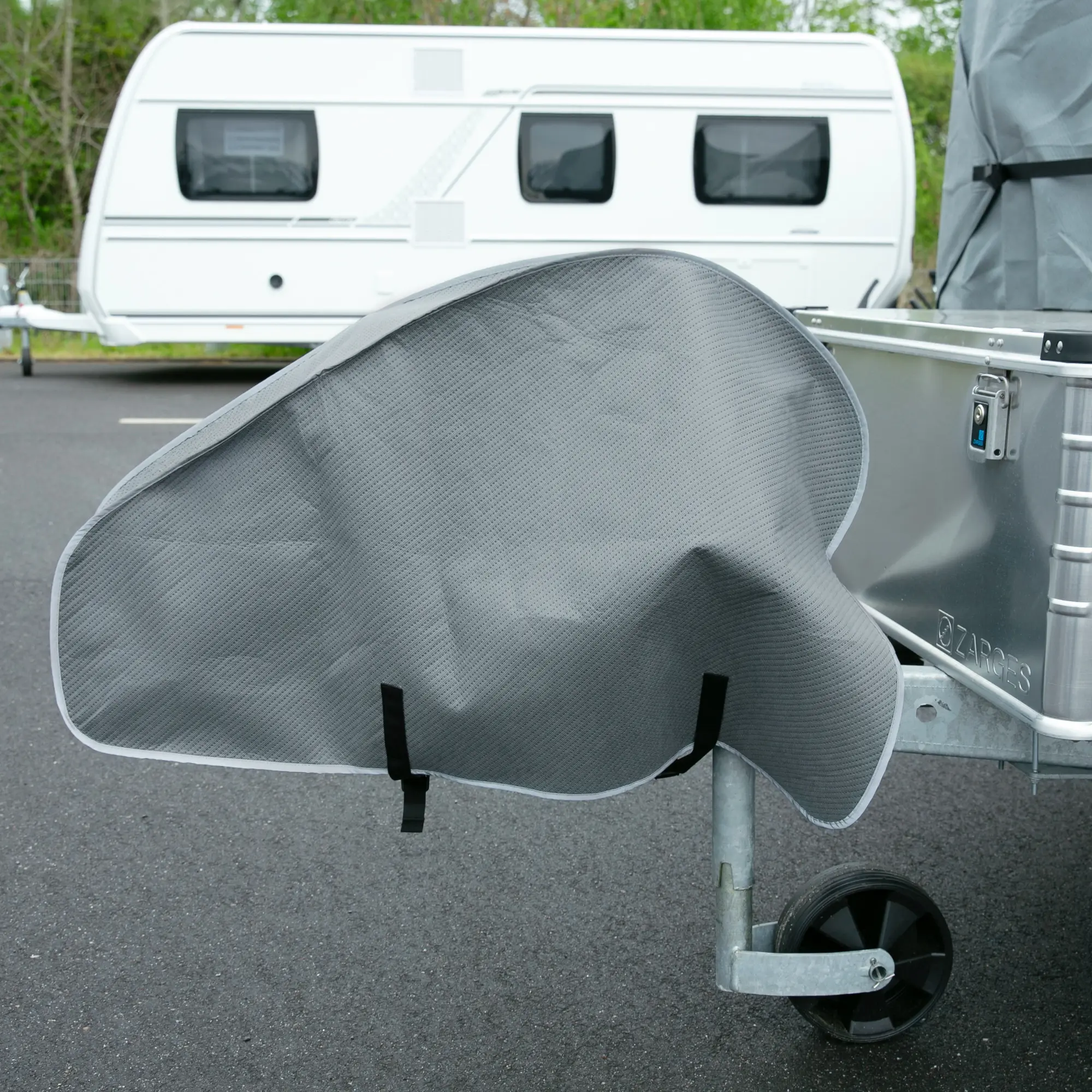 Graue Wohnwagen-Hülle aus hochwertigem, vierlagigem Material inkl. Deichselabdeckung
