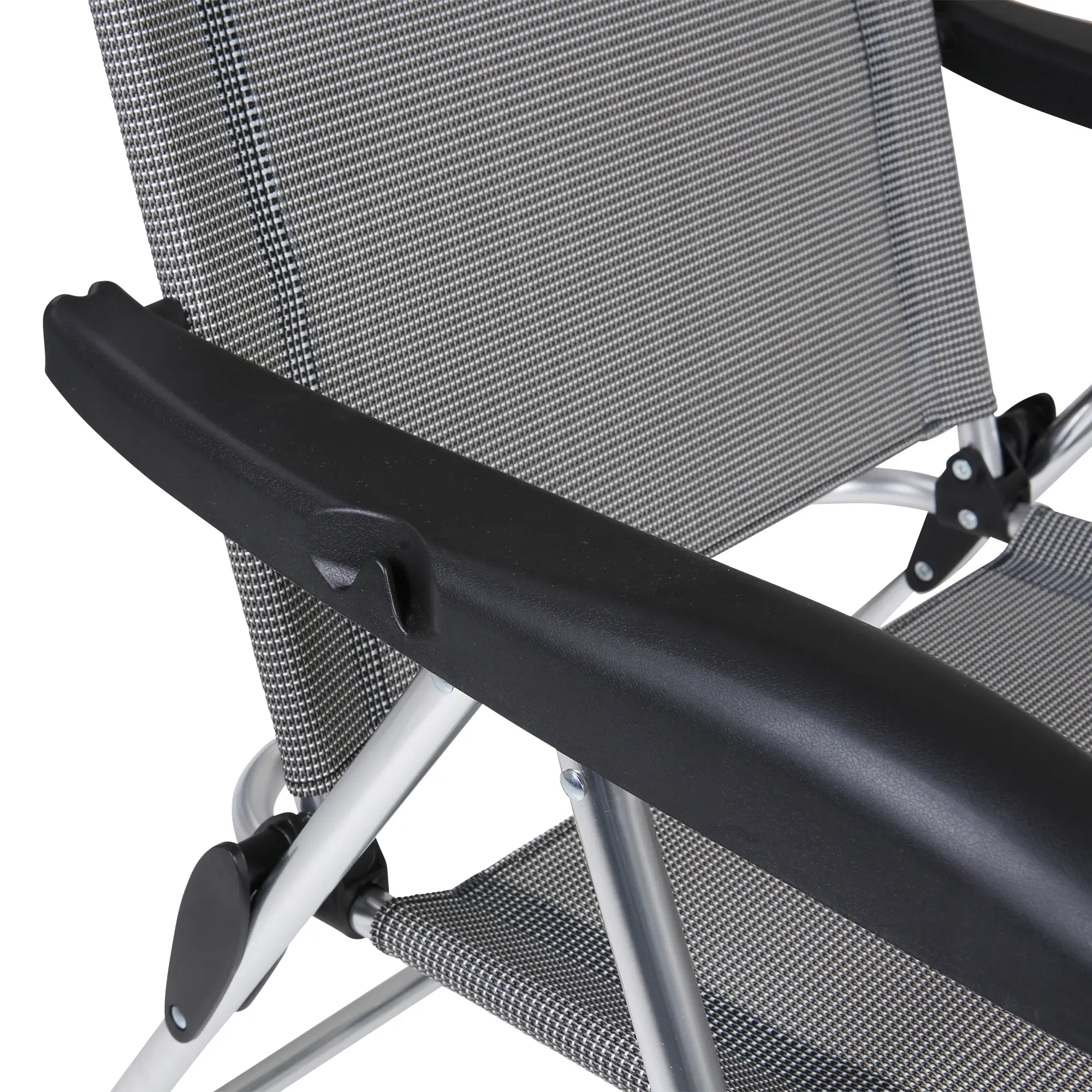 Sowohl die Gelenke als auch die ergonomisch geformten Armlehnen sind aus stabilem Kunststoff gefertigt - an der rechten Armlehne befindet sich ein Haken für die Aufhängung von Taschen und Hüten.