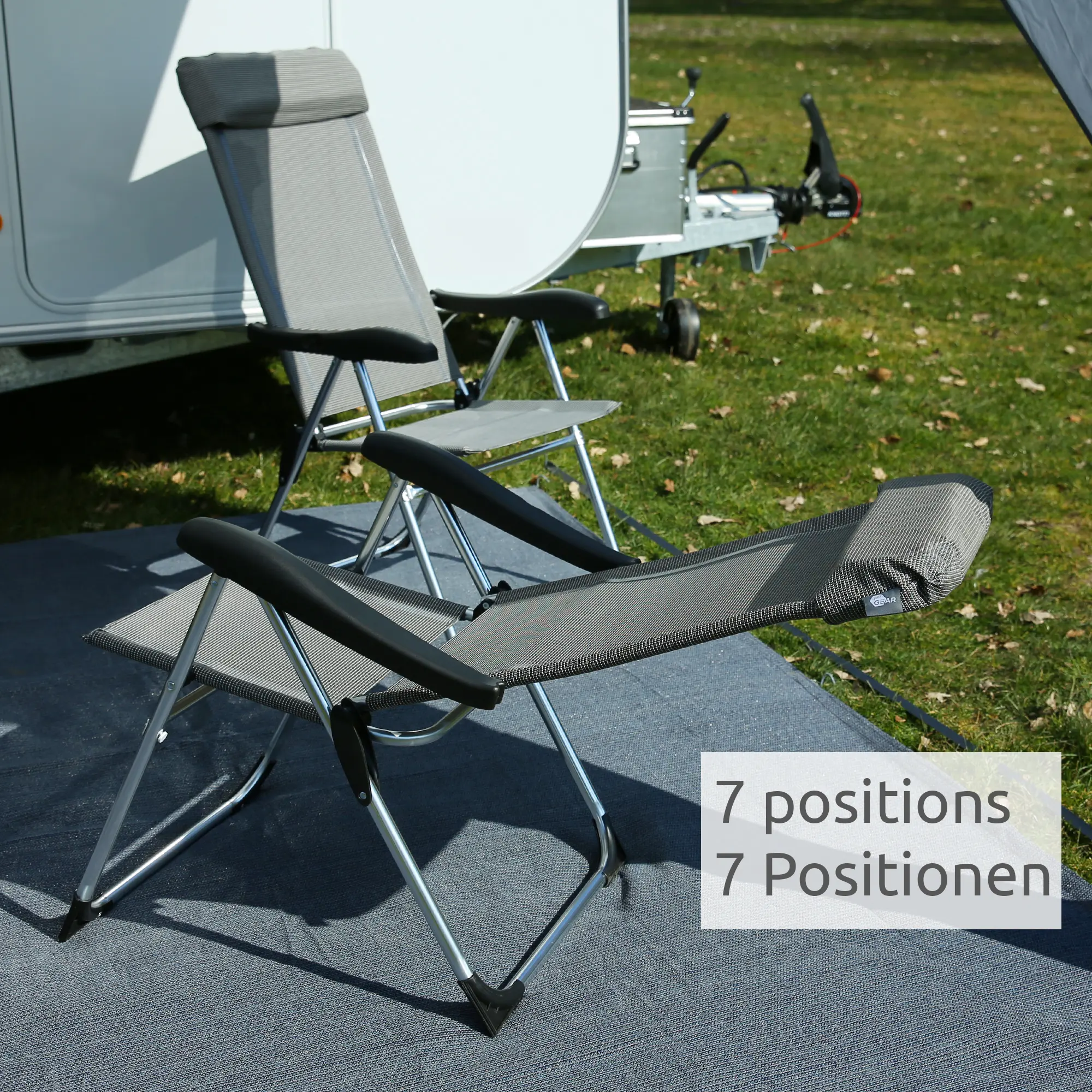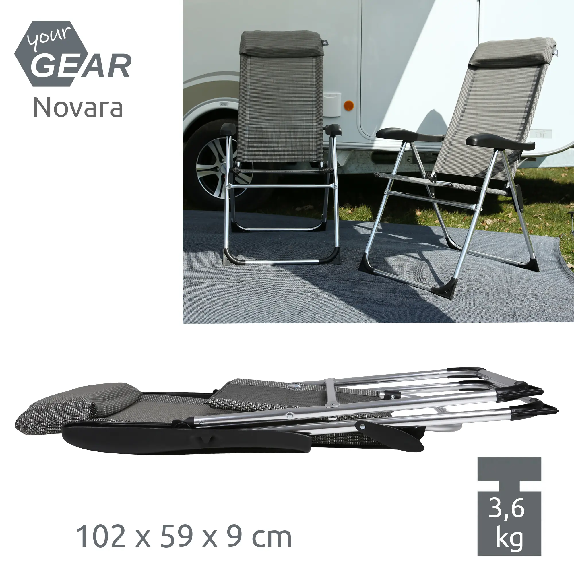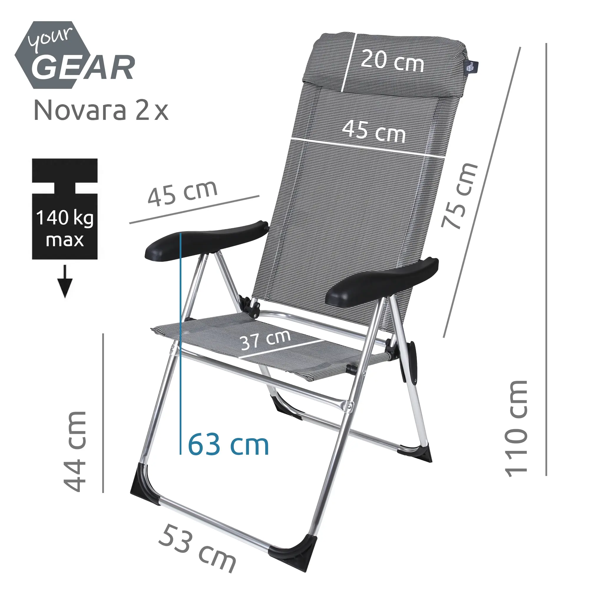 your GEAR Novara Set - 2 Hochlehner, Aluminium Campingstühle, 7 Positionen, Gartenstuhl max 140 kg