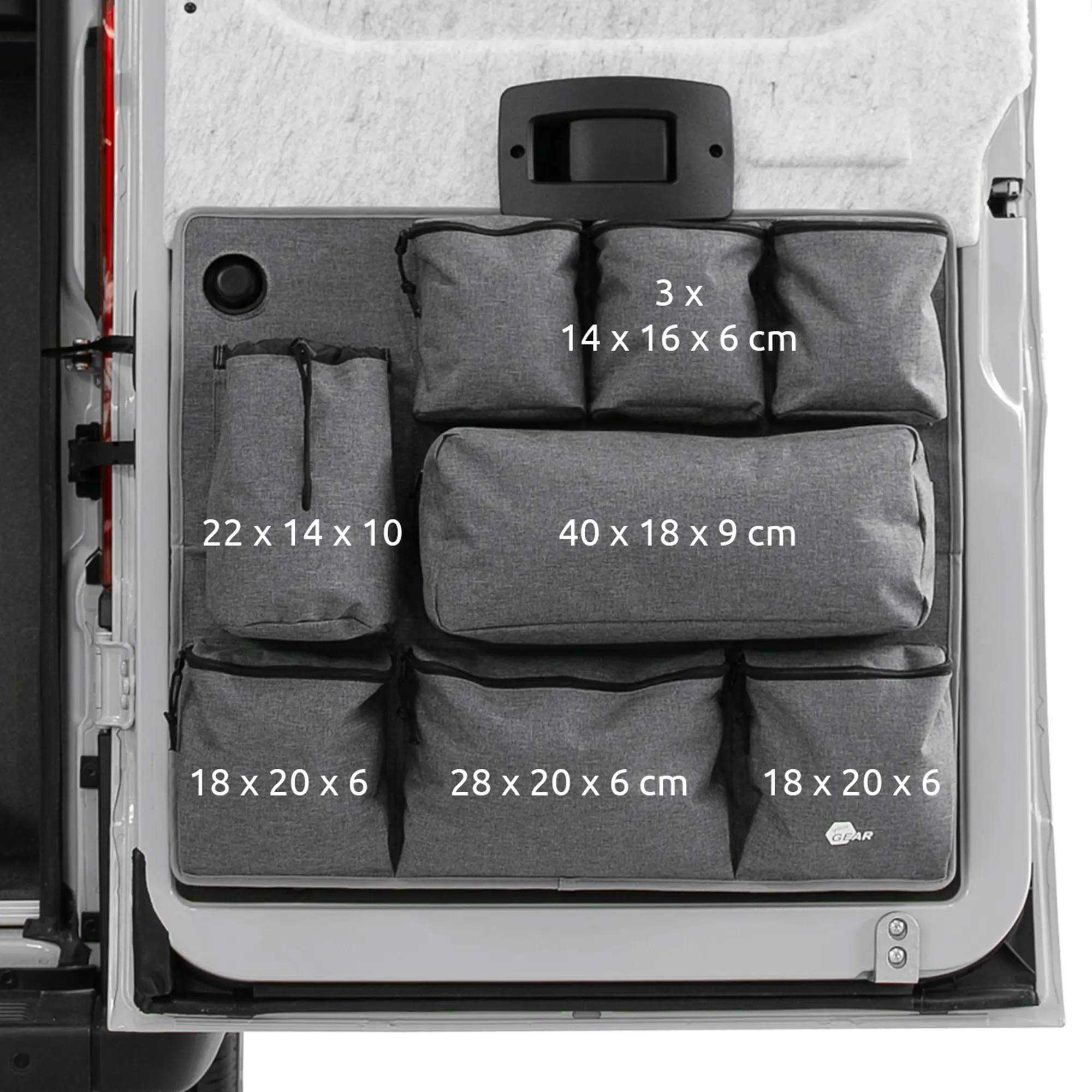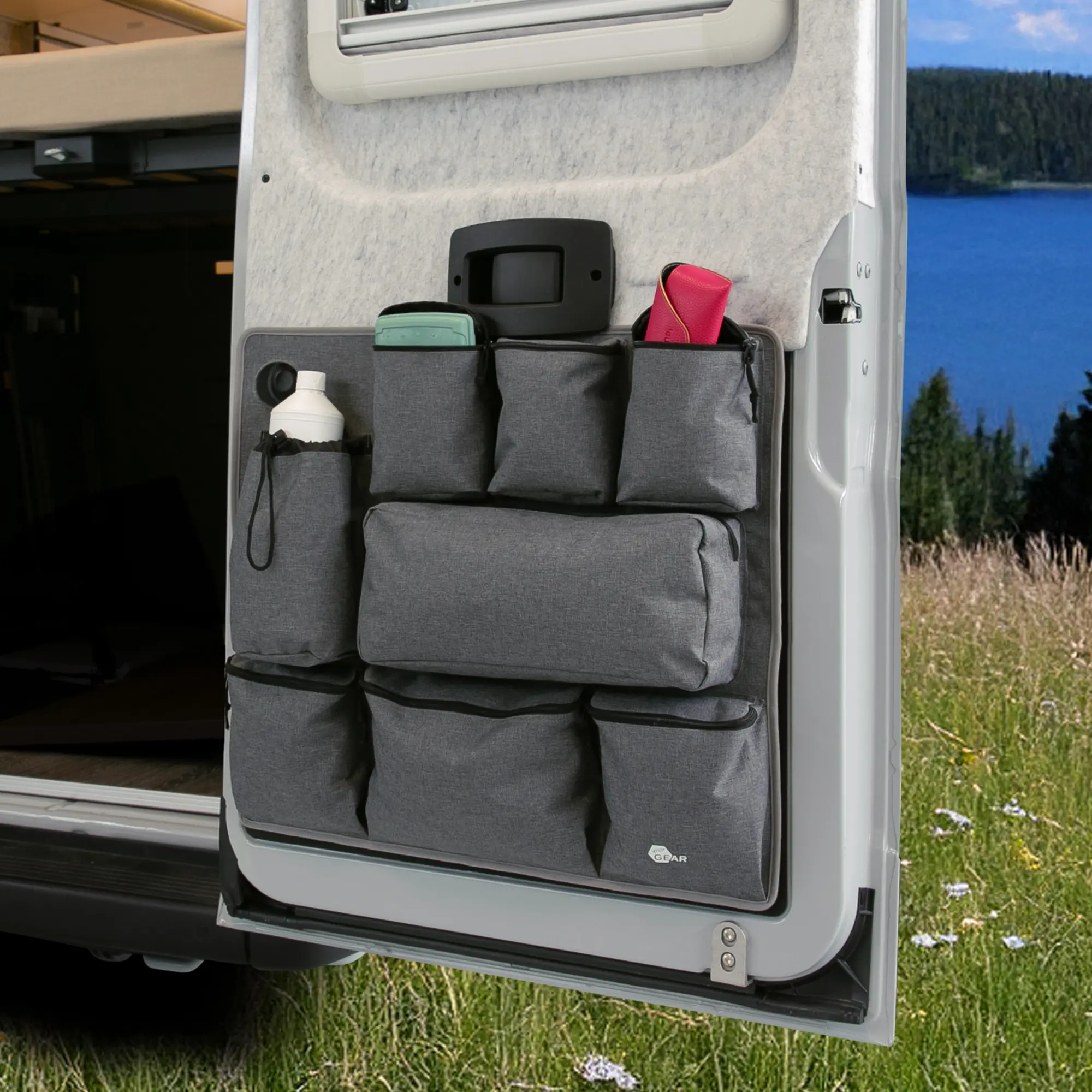 - Hecktür Organizer Ortles – Die perfekte Lösung von your GEAR, um ungenutzten Stauraum im Camper effizient und übersichtlich zu nutzen. Maße: Breite 66 cm, Höhe 61 cm