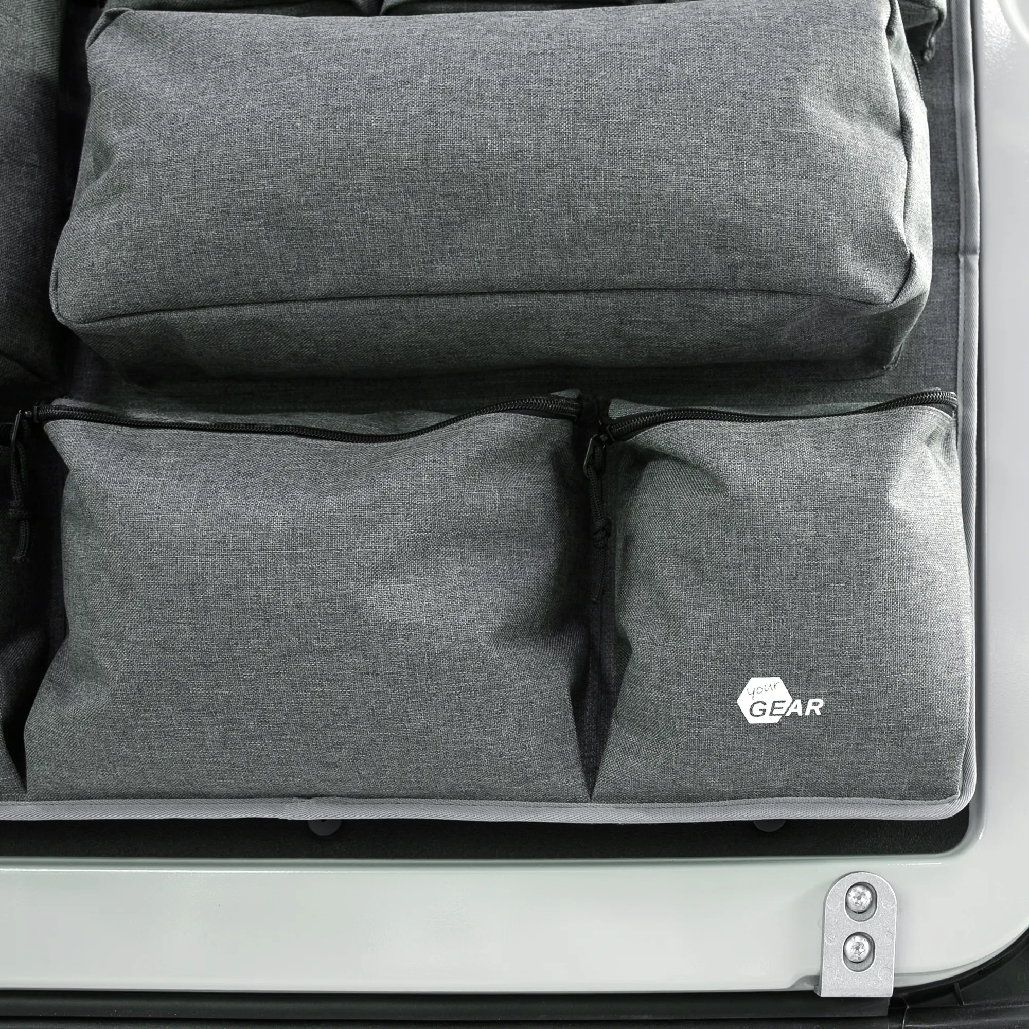 Jeder Organizer verfügt über 8 robuste Taschen in unterschiedlichen Größen. Sie bieten im Transporter ausreichend Platz für Werkzeug, Campingzubehör, Reiseutensilien und Alltagsgegenstände. Durch die intelligente Aufteilung ist alles schnell griffbereit.