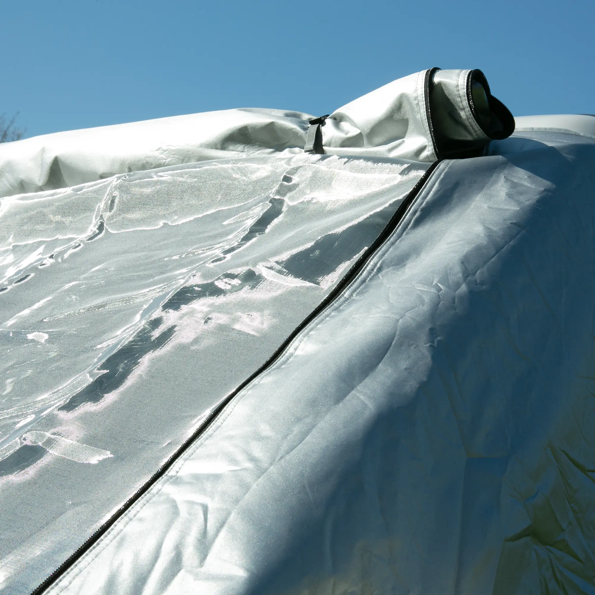 Thermo-Isolation bei Bedarf: Bei starker Hitze lässt sich die Frontscheibe komplett mit dem Außencover per Reißverschluss verschließen. Dies sorgt für zusätzliche Isolation und maximalen Hitzeschutz.