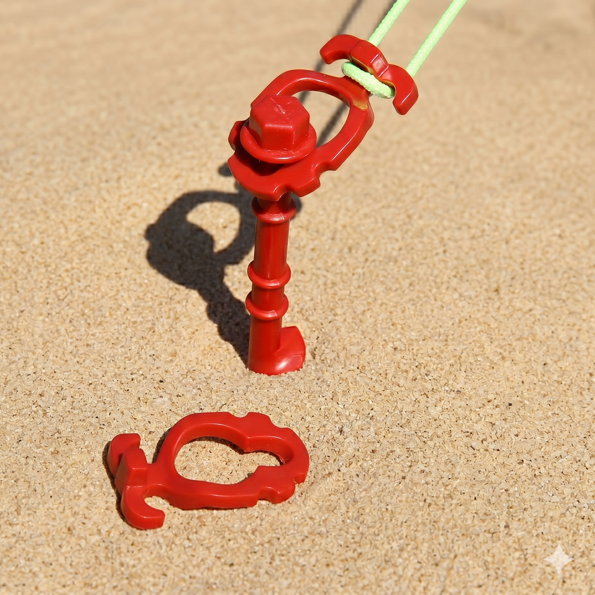 Sollte der Boden einmal zu hart sein, um den Hering vollständig einzudrehen, greift das höhenverstellbare System: Platzieren Sie den Haken einfach in Bodennähe, um die Hebelkraft zu minimieren und dennoch volle Stabilität zu gewährleisten.