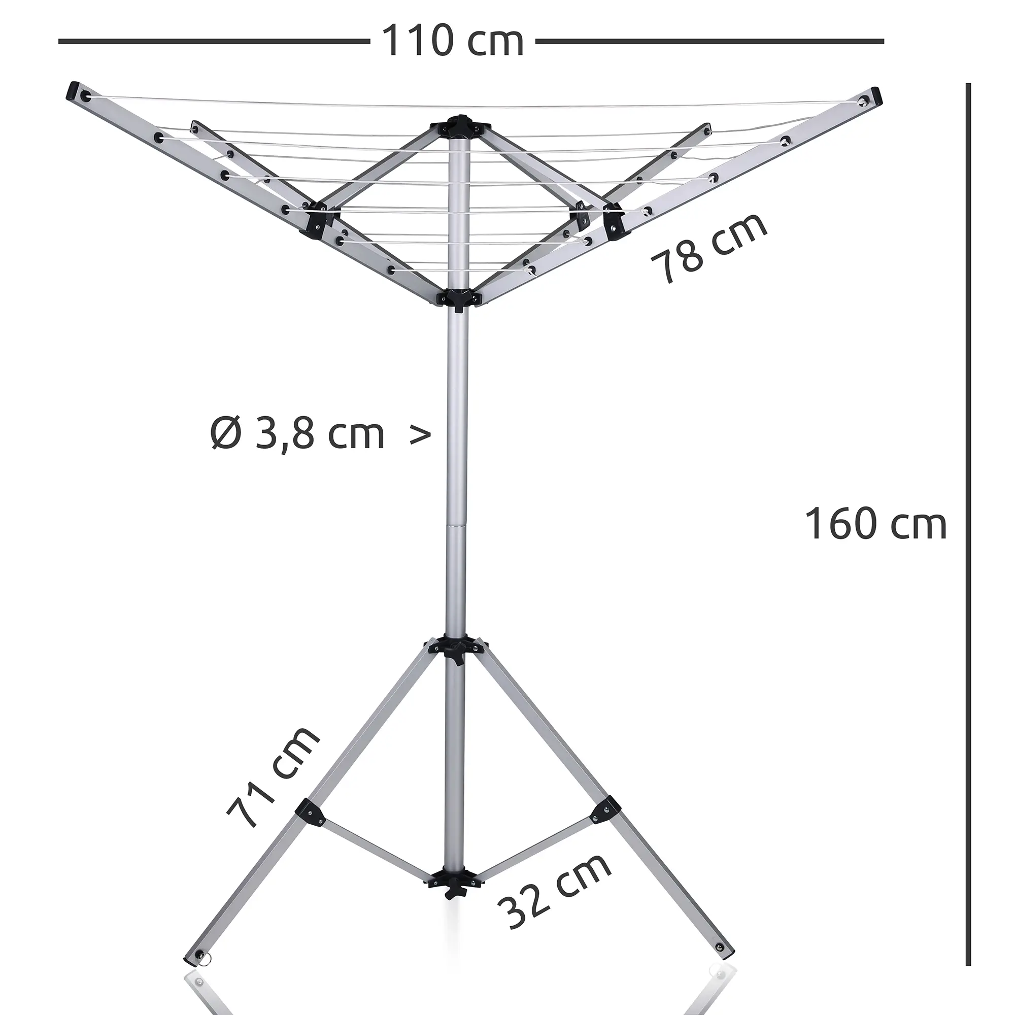 - Mobiler Wäscheständer - Hochwertiges, leichtes Gestell mit Ø 38 mm Hauptrohr und vier robusten Armen für hohe Stabilität. Stufenlos höhenverstellbare, mobile Aluminiumwäschespinne mit wetterfester Schutzhülle