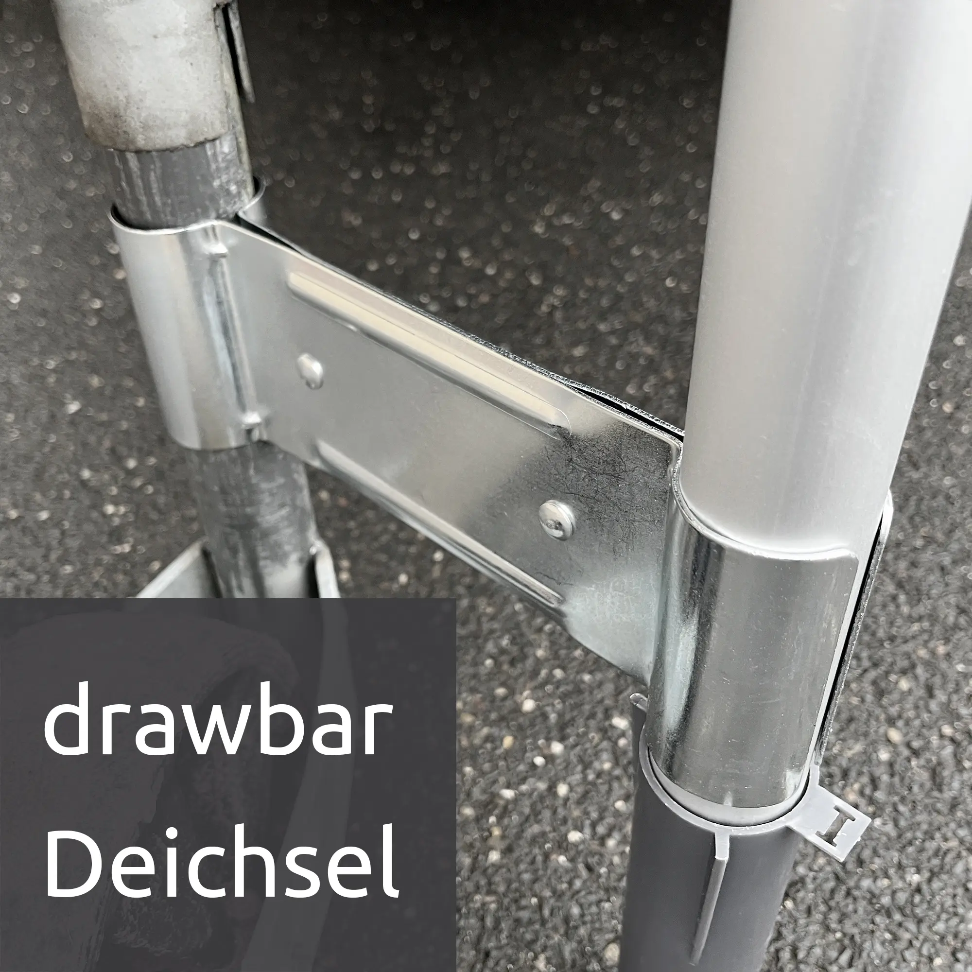 • Deichselverbindung: 24,5 x 8 x 4 cm für Ø 38/ 42/ 48 mm Rohre