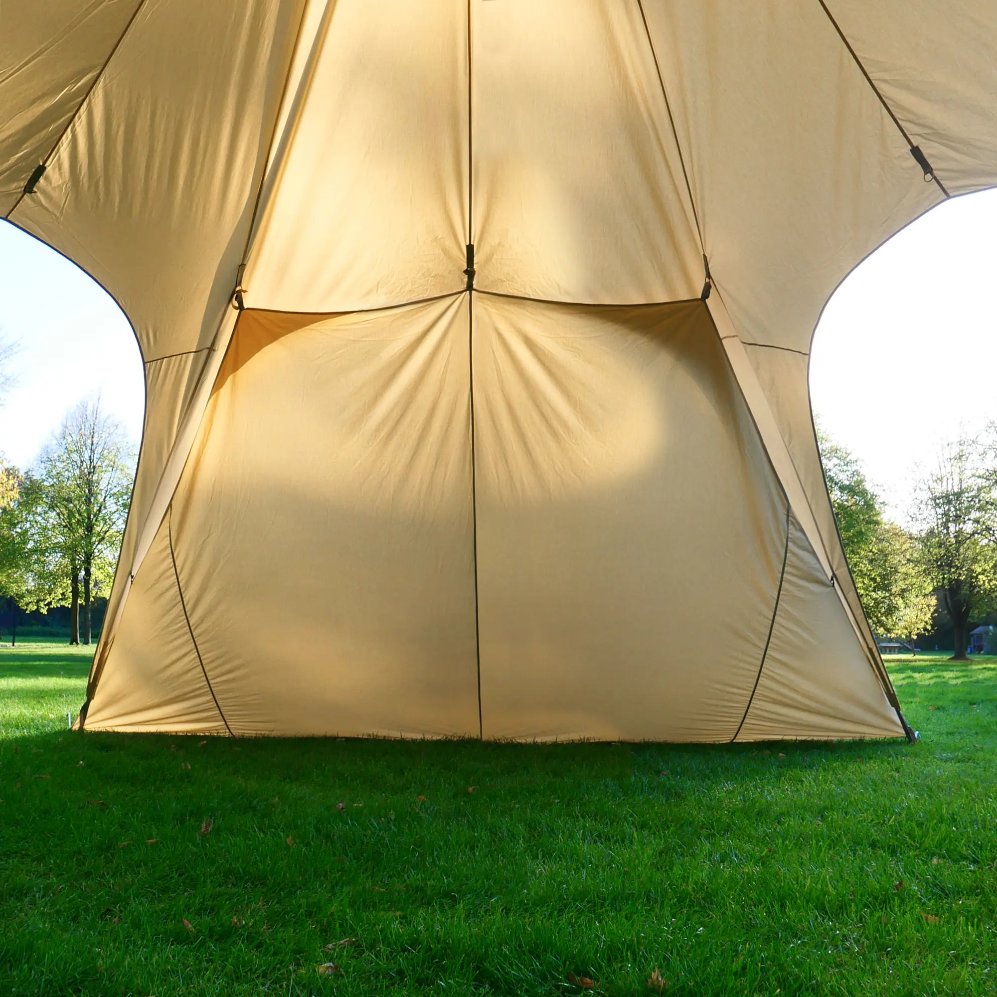 Sie Sonora Seitenwände können passend zum Verlauf der Sonne am Zelt befestigt werden und spenden zusätzliche Schatten. Zudem vergrößern sie den wettergeschützten Bereich des Sternzelts und bieten zuverlässigen Schutz vor Regen.