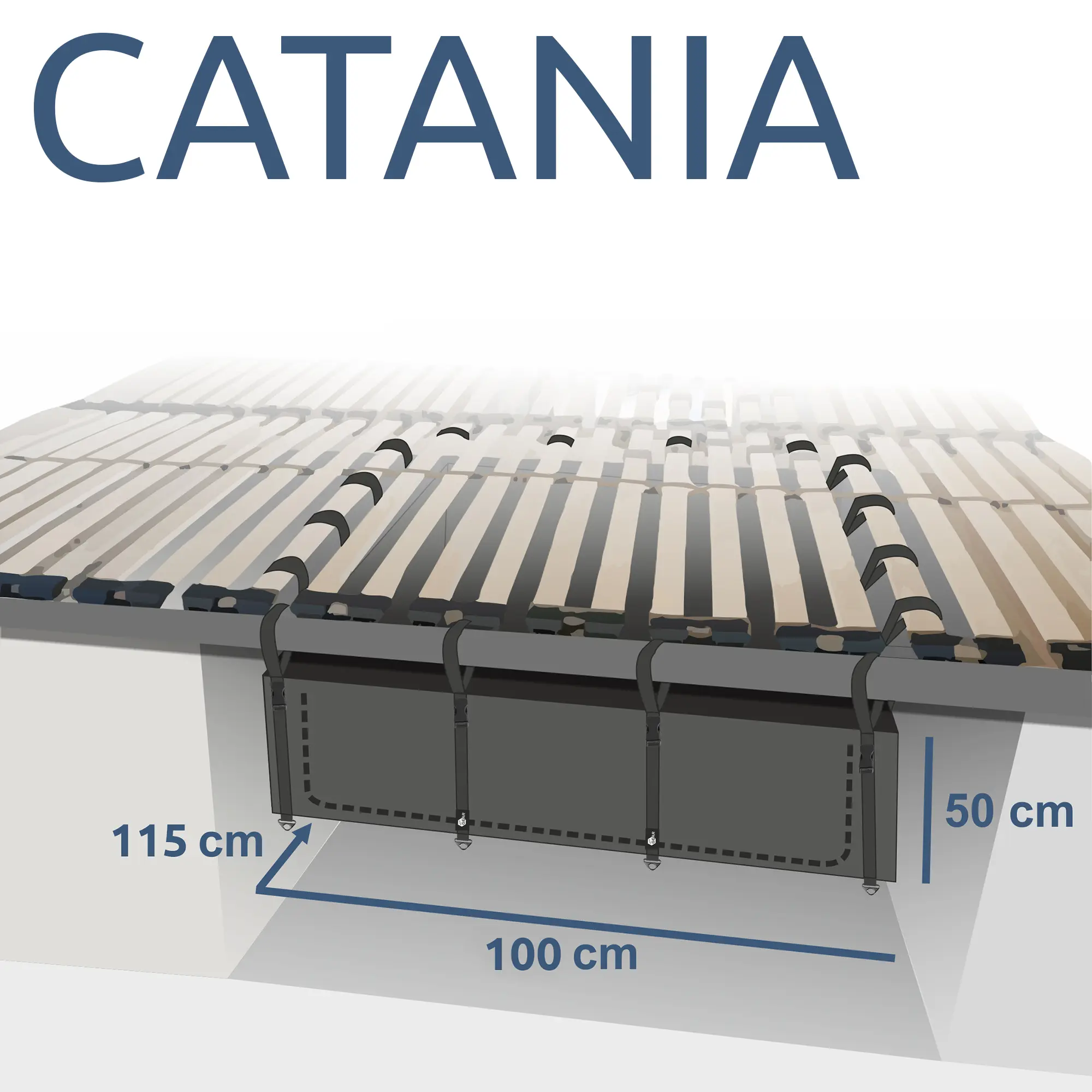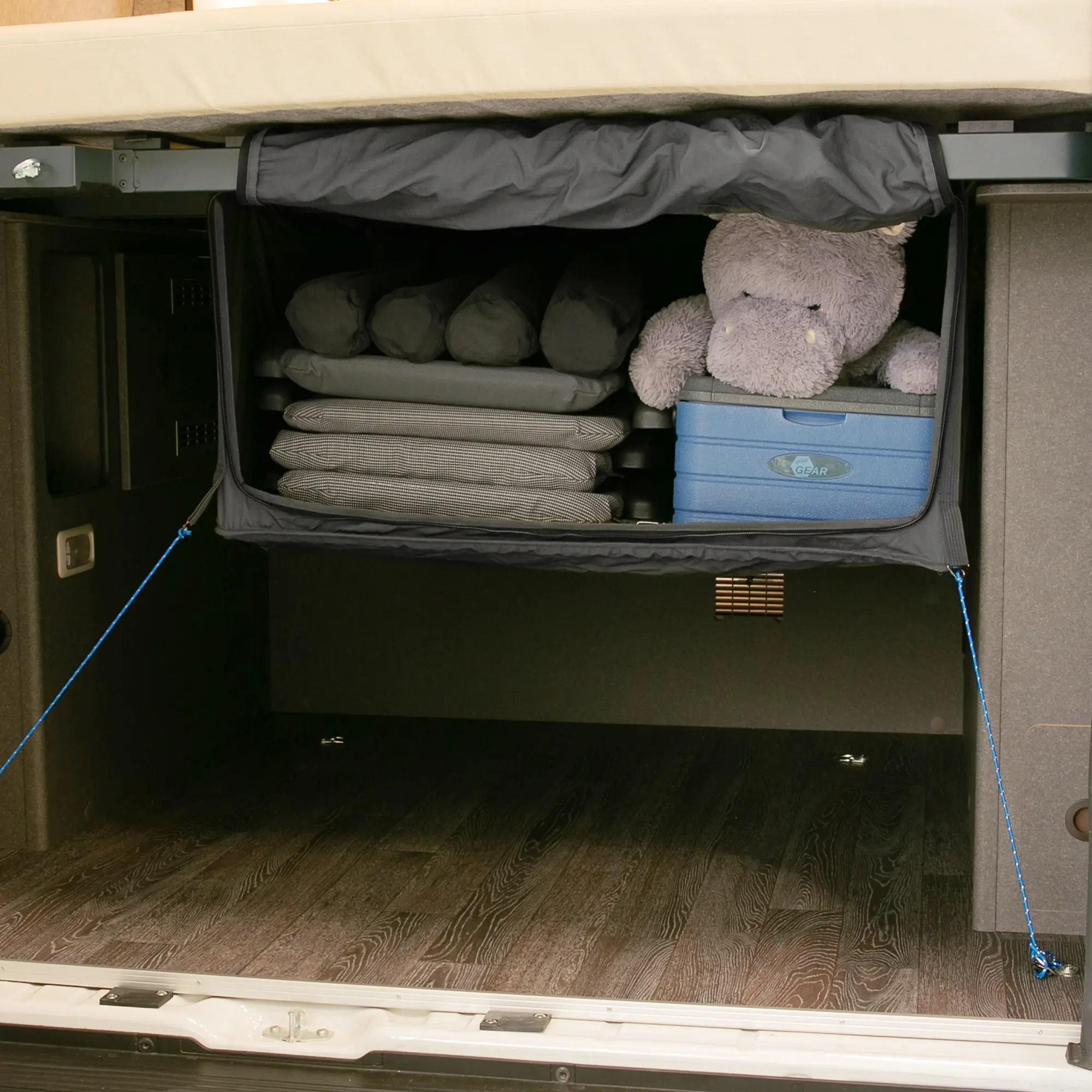 - ZWEITE LADEEBENE – Die 115 x 100 x 50 cm große Tasche wird unter dem Lattenrost befestigt. So entsteht praktischer Stauraum in der Höhe, während der komplette Boden der Heckgarage frei bleibt