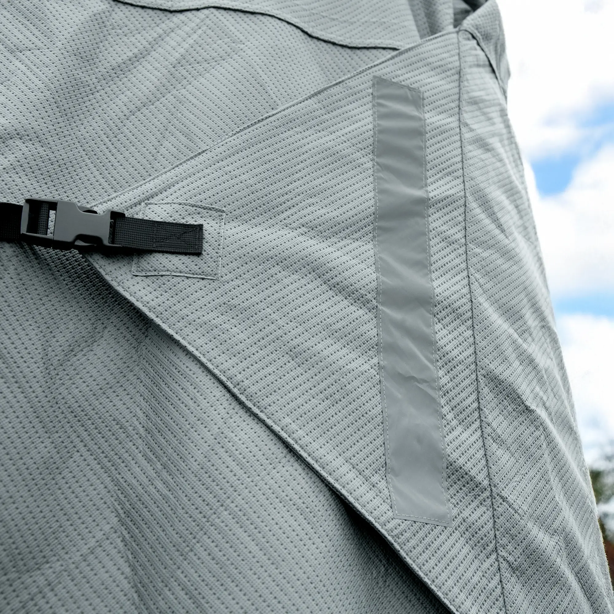 - Komfortabler Zugang - 4 stabile Reißverschlüsse ermöglichen das Öffnen der Wohnwagenabdeckung und den Zugang zum Wohnwagen, während Klettbandverschlüsse die aufgerollten Seitenteile fixieren