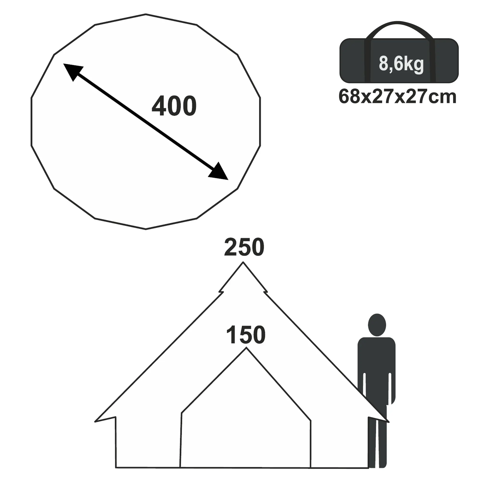 Das Ravello 400 von yourGEAR ist ein geräumiges Tipi Zelt mit einem Durchmesser von 4 Metern und optimal geeignet für 4 – 6 Personen.