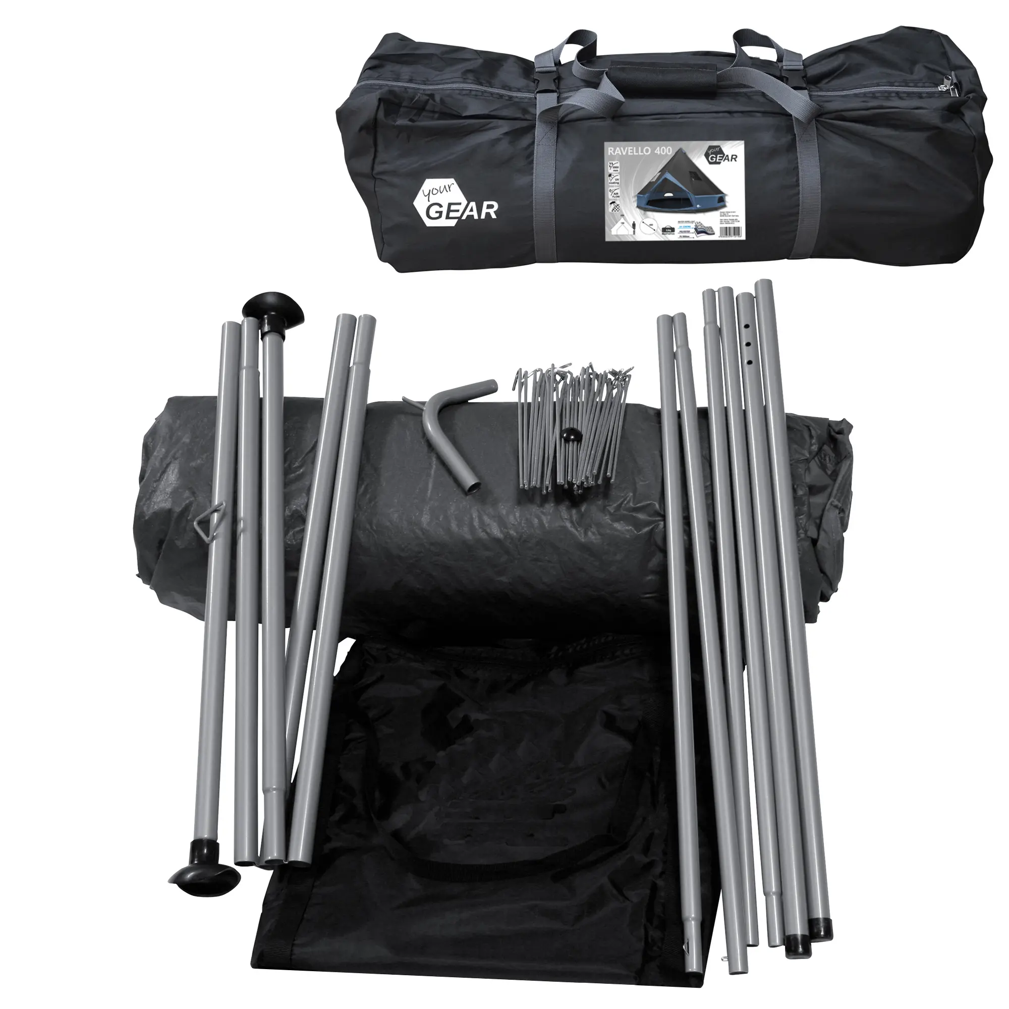 Das Ravello 400 - Ihr perfektes Familienzelt mit riesigem Wohn- / Schlafraum, eingenähtem Zeltboden und Rund-Um-Insektenschutz.