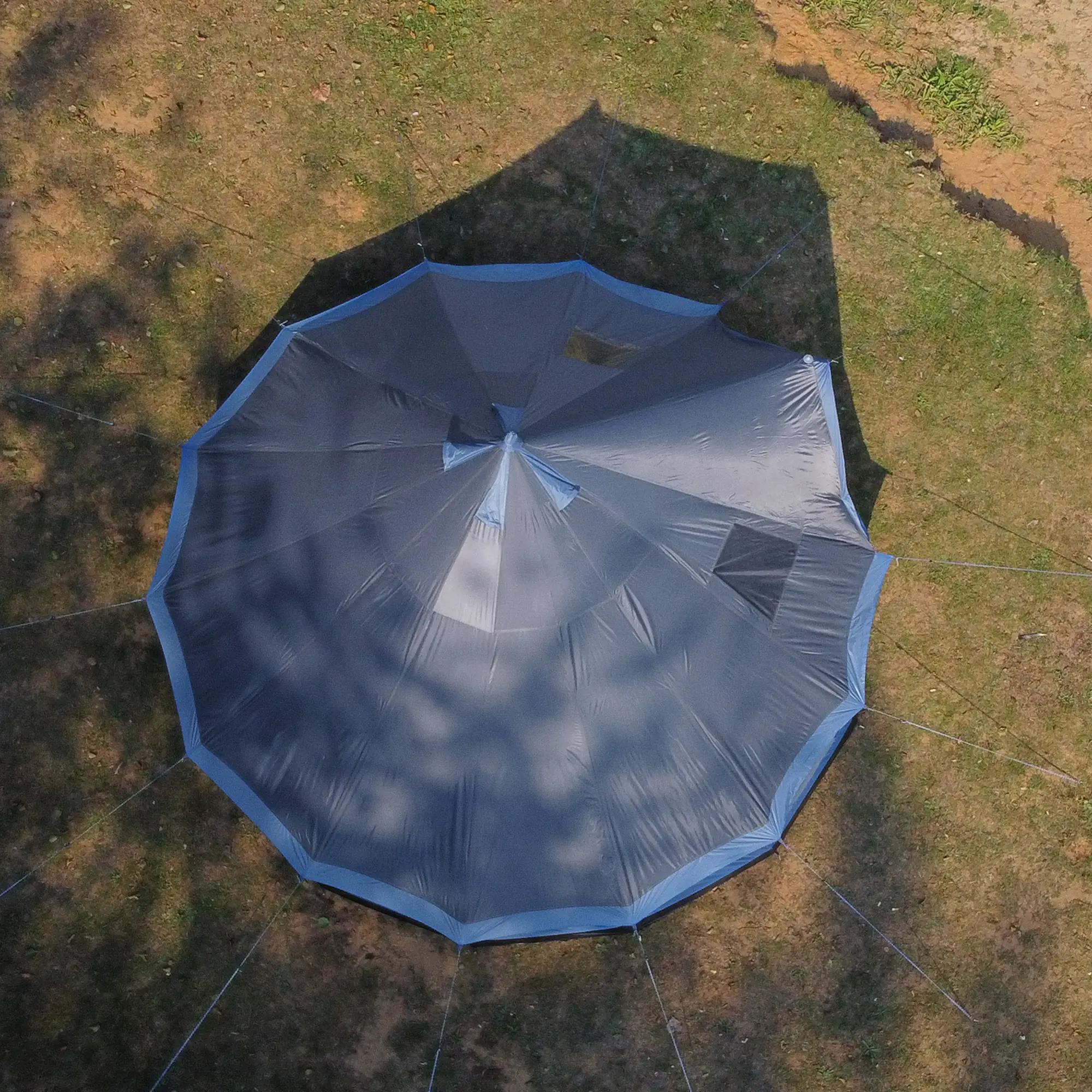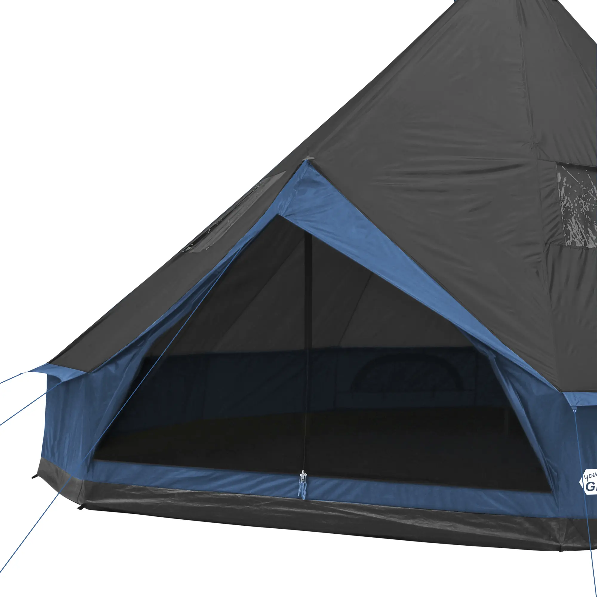 - Tipi-Zelt aus wasserdichtem Polyester mit eingenähter Bodenplane | Schlafbereich für 4 bis 6 Mann | Maße: Ø 400 cm, Höhe 250 cm | Wassersäule: 5000mm | komfortable Stehhöhe | Farbe: Blau & Grau