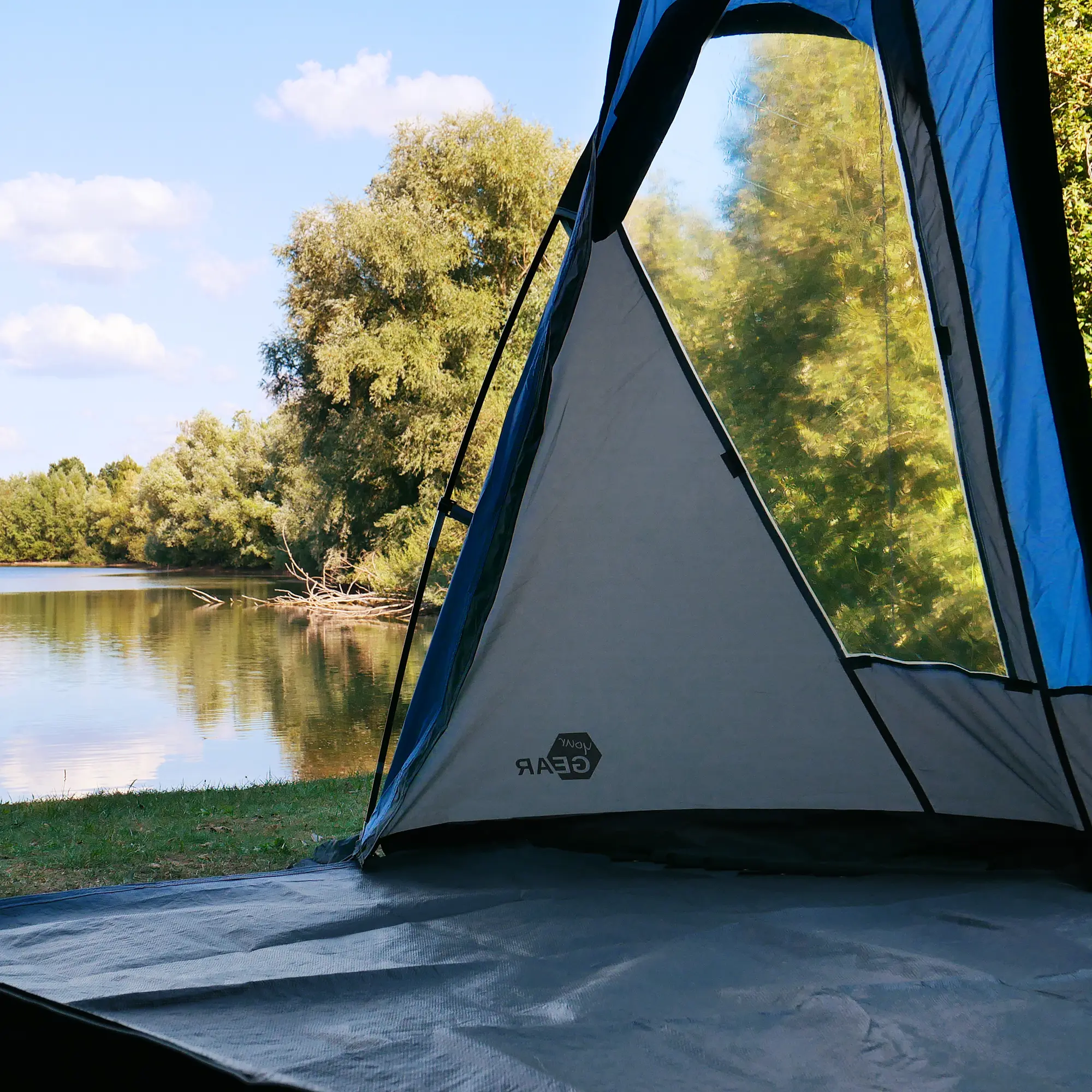 your GEAR Zelt Tivano 5 Personen Kuppelzelt Wohnraum Seiteneingang Fenster Stehhöhe 5000 mm Blau Grau