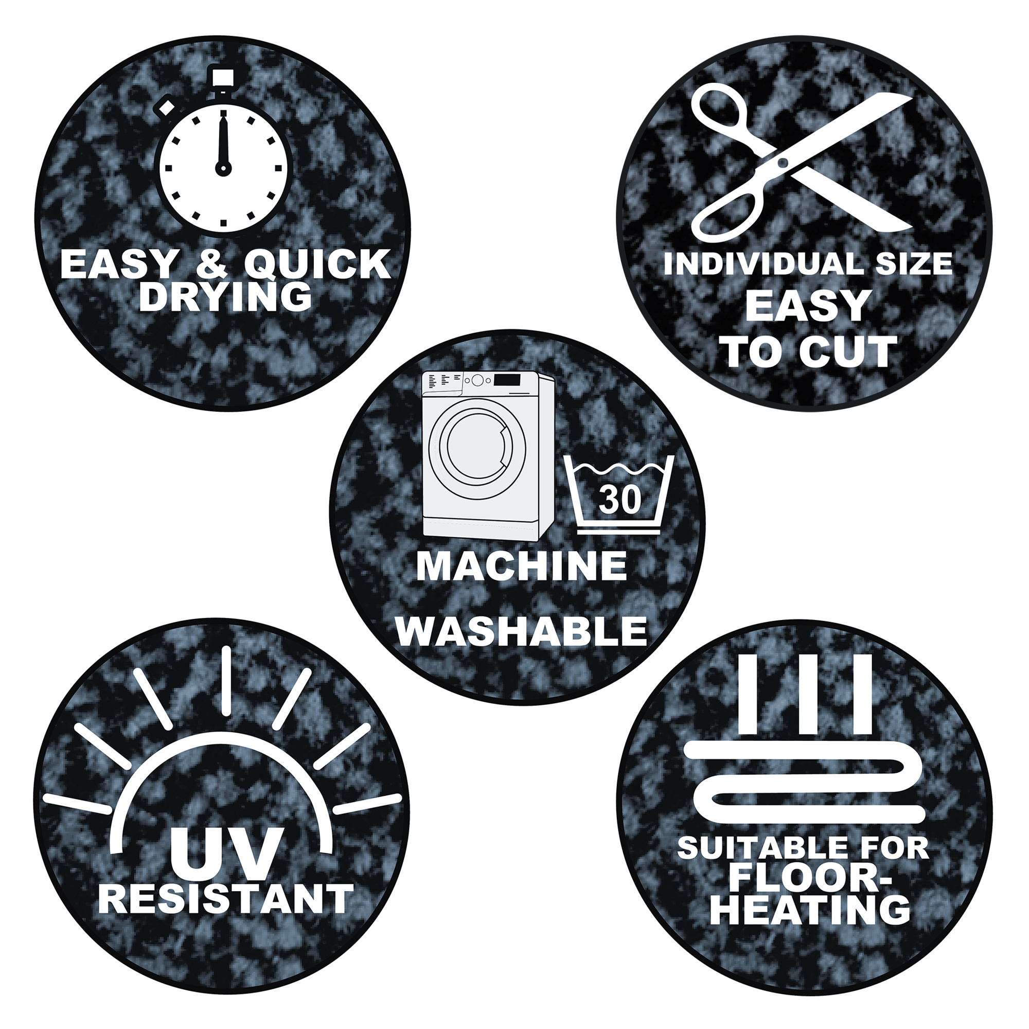 Die Teppichmatten sind Fußbodenheizung geeignet und können problemlos auf allen glatten Bodenbelägen verwendet werden.