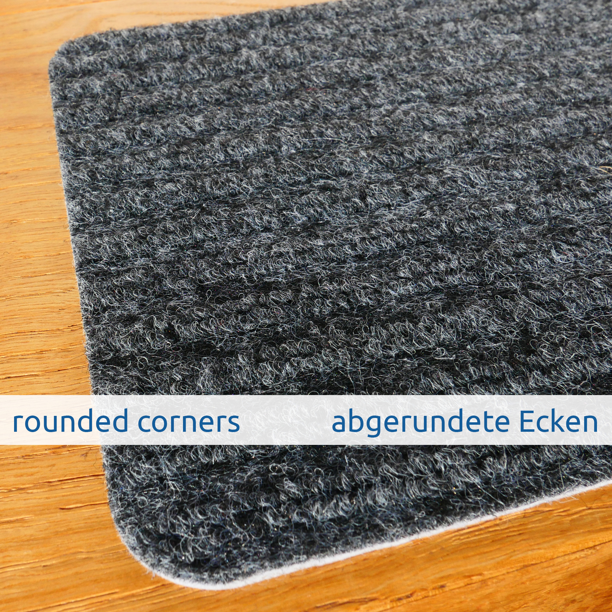 - Die rutschsichere Treppenstufen-Auflage besitzt eine strapazierfähige Trittfläche aus robusten Kunstfasern. Die Faserstruktur des Flors nimmt Schmutz auf und hält ihn bis zur Reinigung fest