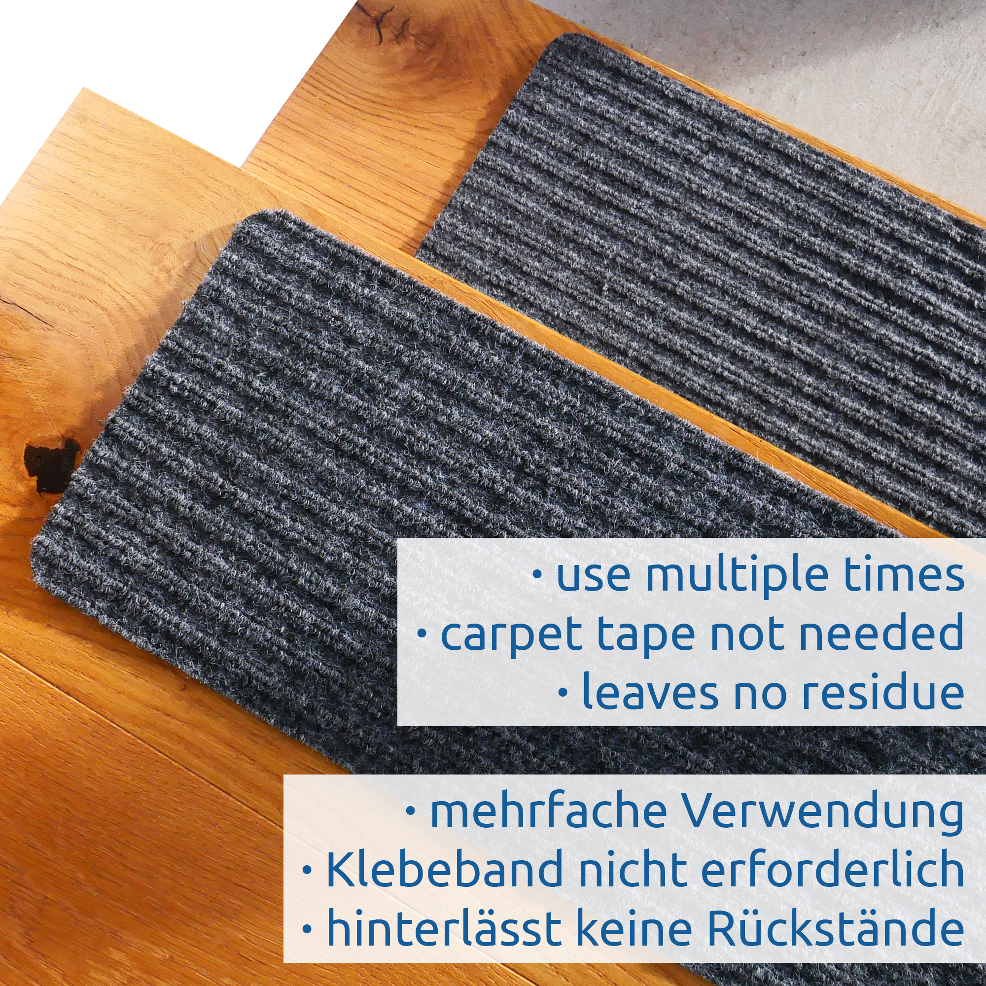 - Strapazierfähige Anti-Rutsch Stuffenmatten mit selbsthaftender TPR Unterseite! Die innovative Rückseite des Treppenteppichs haftet von selbst auf allen glatten Oberflächen, aber ohne dabei zu kleben! Kleber oder Klebeband werden nicht benötigt