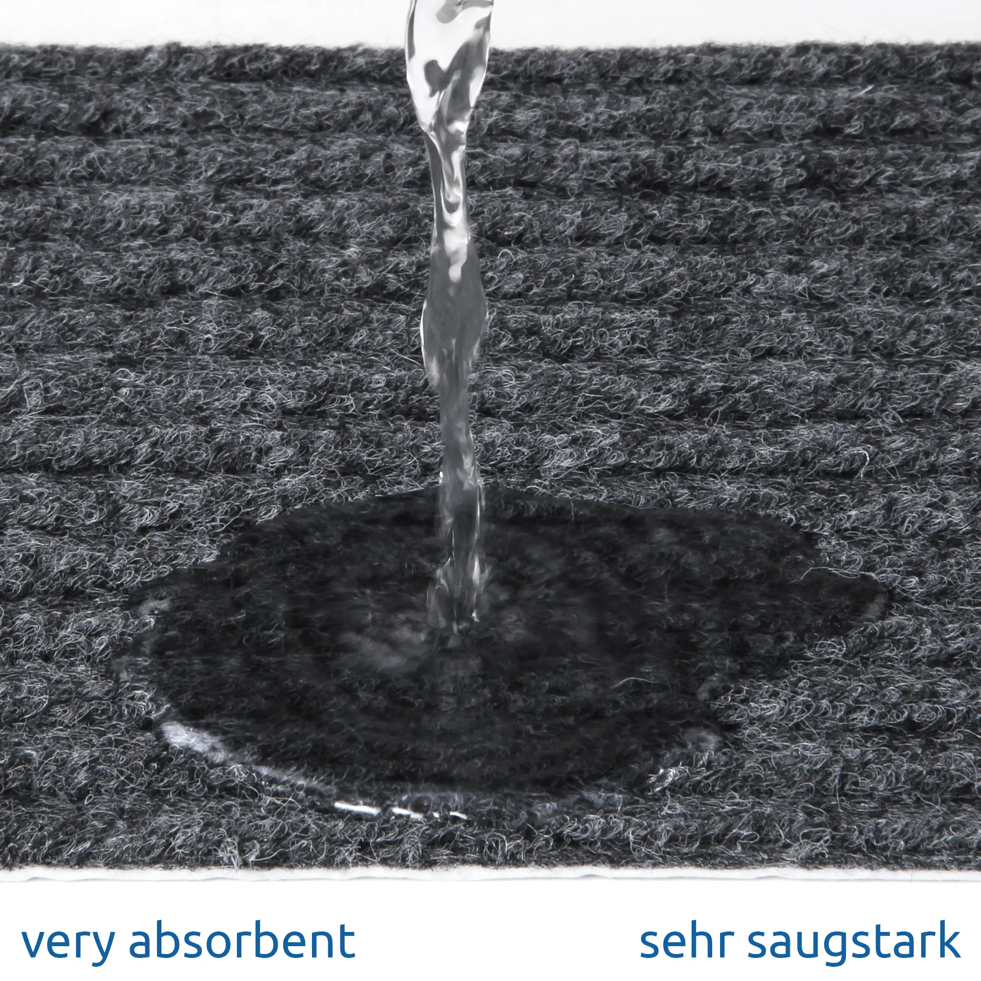 Dank kurzer Fasern und wasserundurchlässigem Trägermaterial ist der saugstarke Teppich in kürzester Zeit wieder trocken und einsatzbereit.