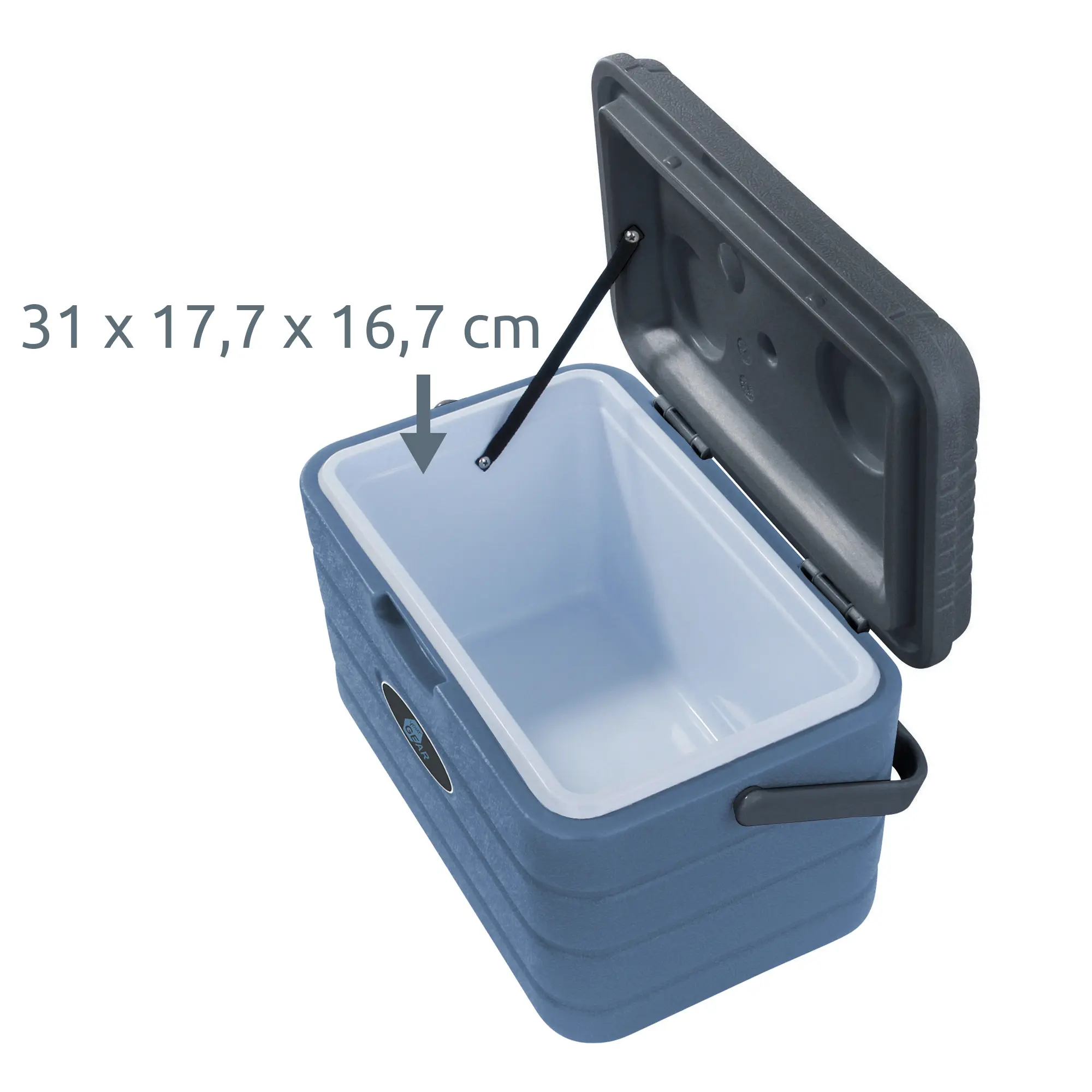 - Große passive Thermobox mit 10 L Fassungsvermögen und PU Vollschaum Isolierung in Korpus, Boden & Deckel | Kühlbehälter Maße | Außen 37x24x24 cm | Innen 31x18x17 cm | Gewicht 1,35 kg | Blau