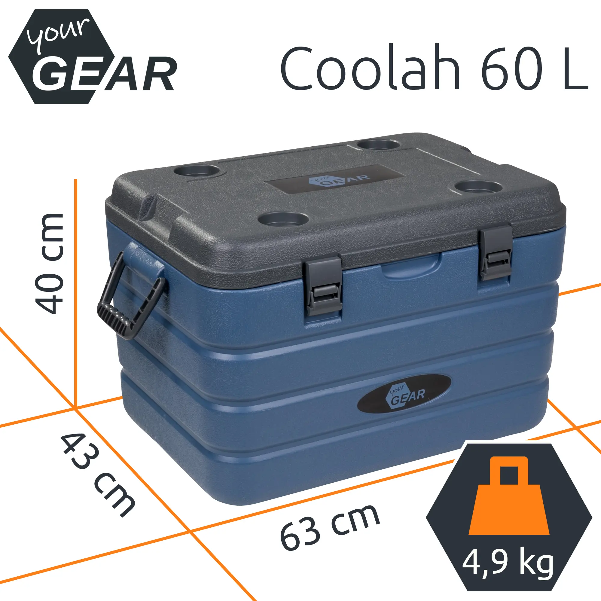 your GEAR 60 Liter Kühlbox Coolah - Thermobox mit vollflächiger PU-Schaum Isolierung - Isolierbox mit 47 Stunden Kühlleistung