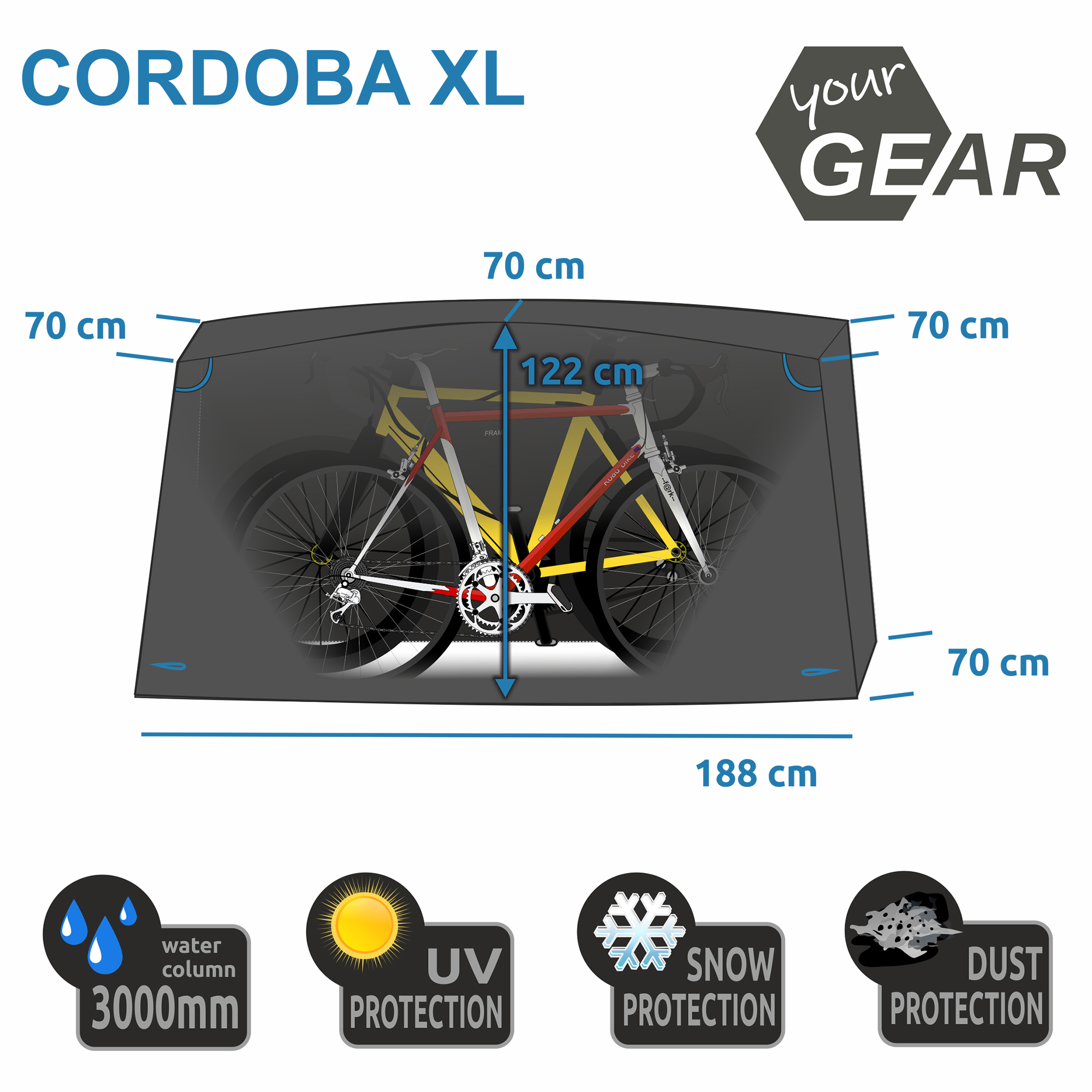 - yourGEAR Cordoba Bike Cover - Fahrradabdeckung für 2 Fahrräder. Die Abdeckplane ist als Fahrradgarage nutzbar oder als Schutz beim Transport der Räder auf Fahrradträgern aller Art