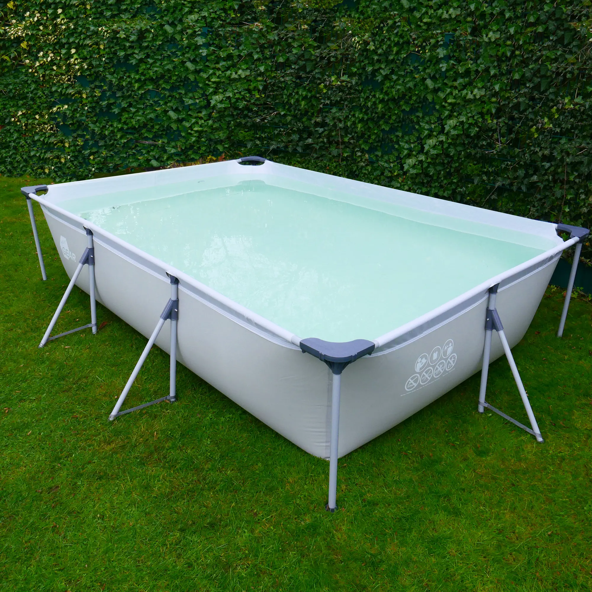 - Sommer, Sonne, Badespaß | Maßangaben: 300 x 200 cm, Höhe: 70 cm | max. Wassertiefe: 63 cm | Wasservolumen: 3700 Liter | Benötigte Aufstellfläche: 376 x 282 cm | Wasserfläche: 5,9m² | Farbe: Grau