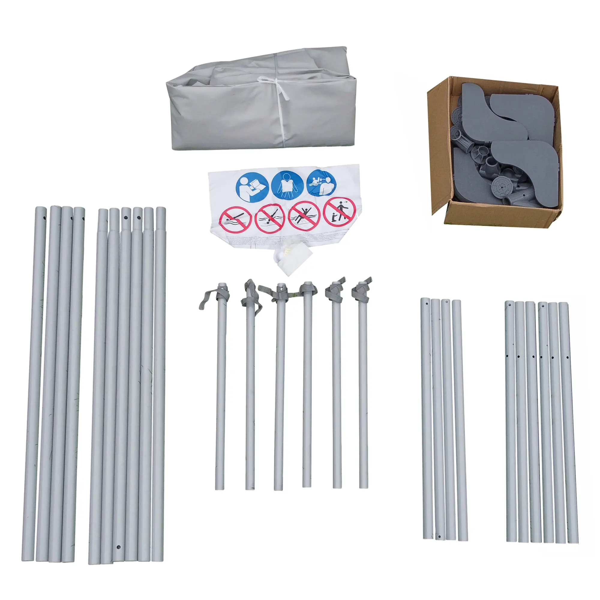 - Der Aufbau des Schwimmbeckens ist schnell und einfach erledigt. Werkzeug wird nicht benötigt, das Rohrgestänge wird einfach zusammengesteckt und die Aufbauzeit beträgt nur wenige Minuten