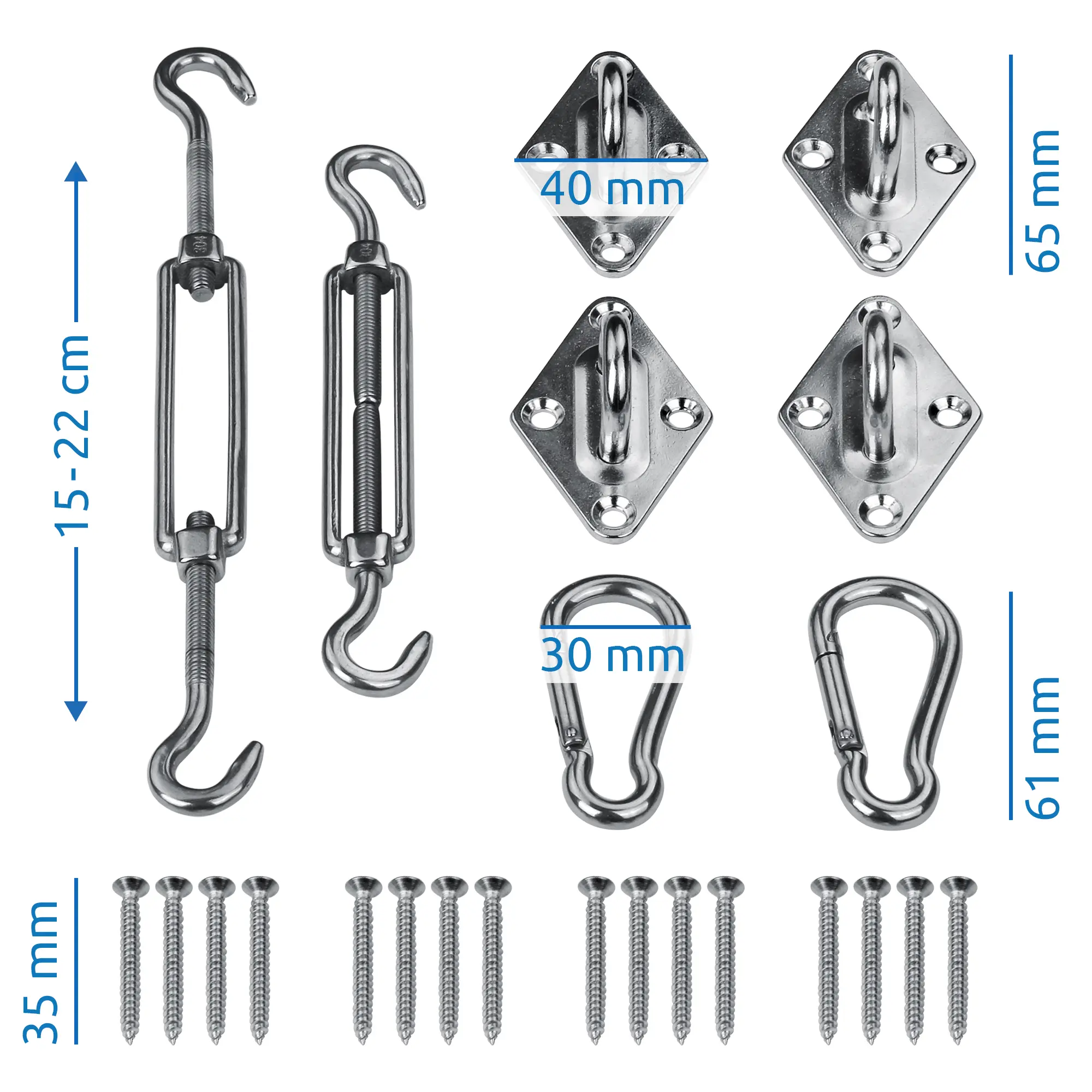 24-teiliges Edelstahl Montageset für Sonnensegel und Tarps