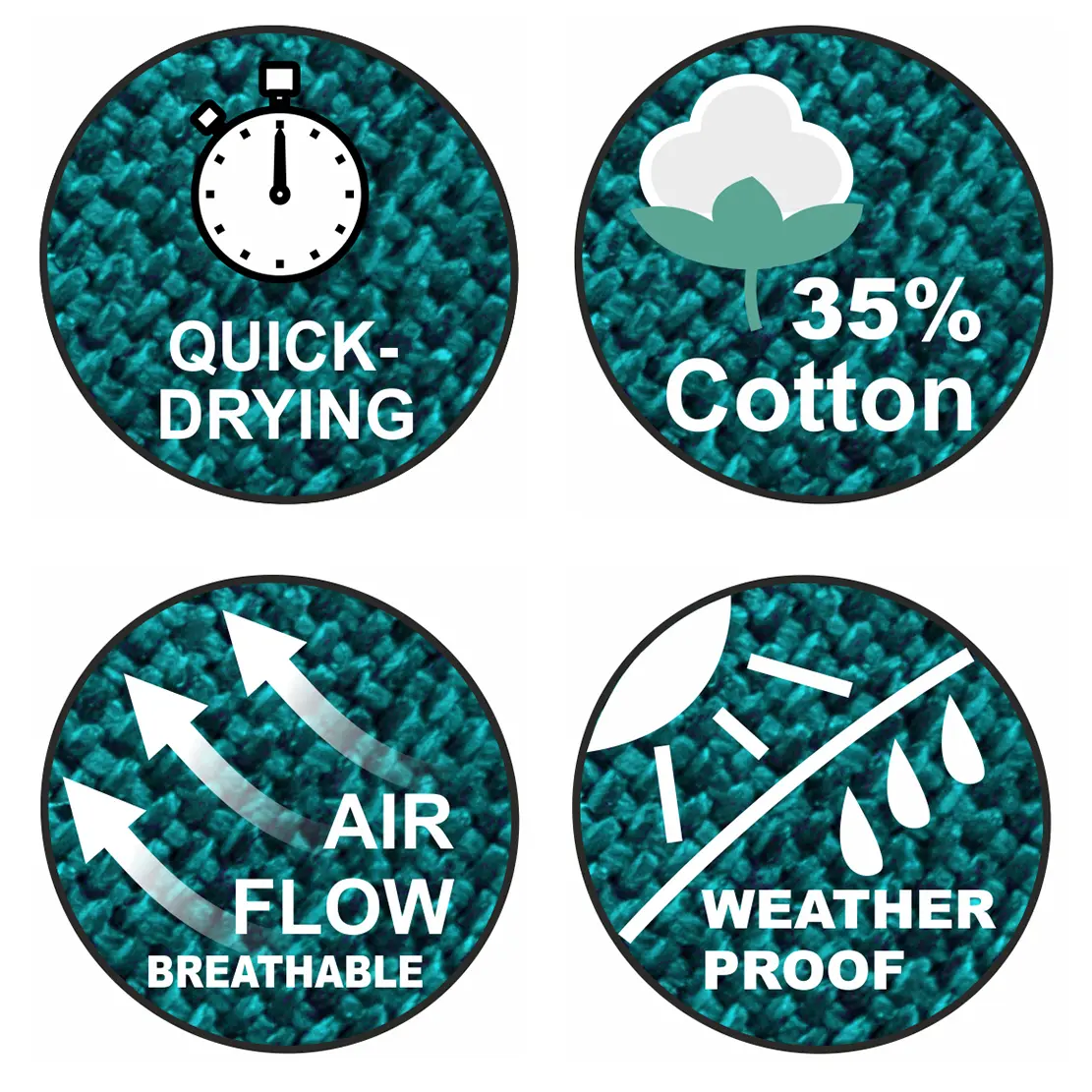 Der Baumwollanteil von 35% sorgt für Atmungsaktivität - die Kunstfaser ermöglicht zuverlässige Formstabilität.