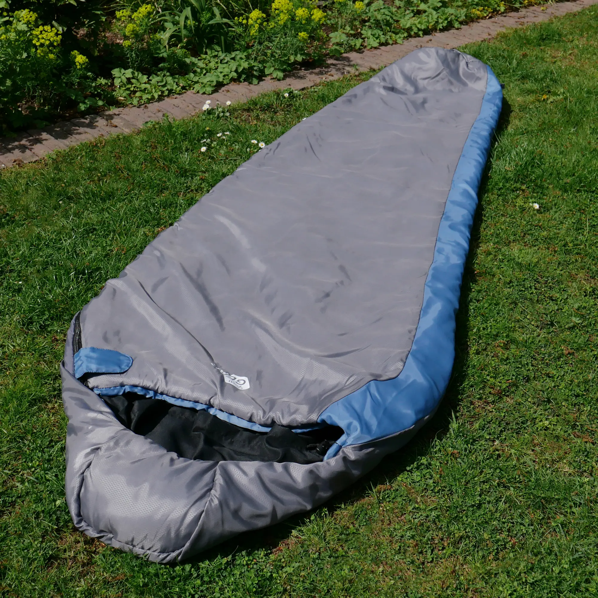 Im Schlafsack befindet sich eine Innentasche mit Klettverschluss und eine Waschanleitung. Der Mumienschlafsack ist gleichermaßen für Erwachsene, Jugendliche und Teenager geeignet.