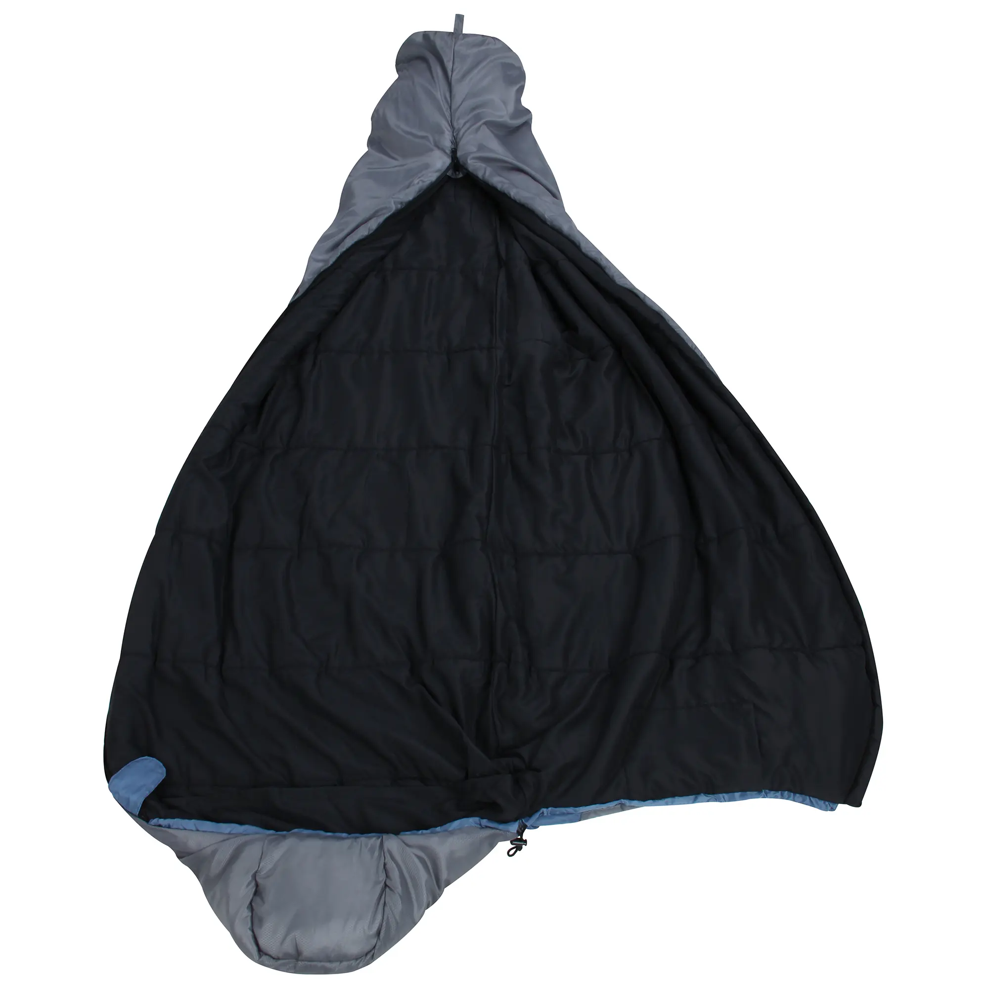 - Mumienschlafsack mit guter Isolierung dank Konturkapuze, gefütterter Reißverschluss Abdeckung und bauschiger Faser-Füllung mit einem Flächengewicht von 150g/m²